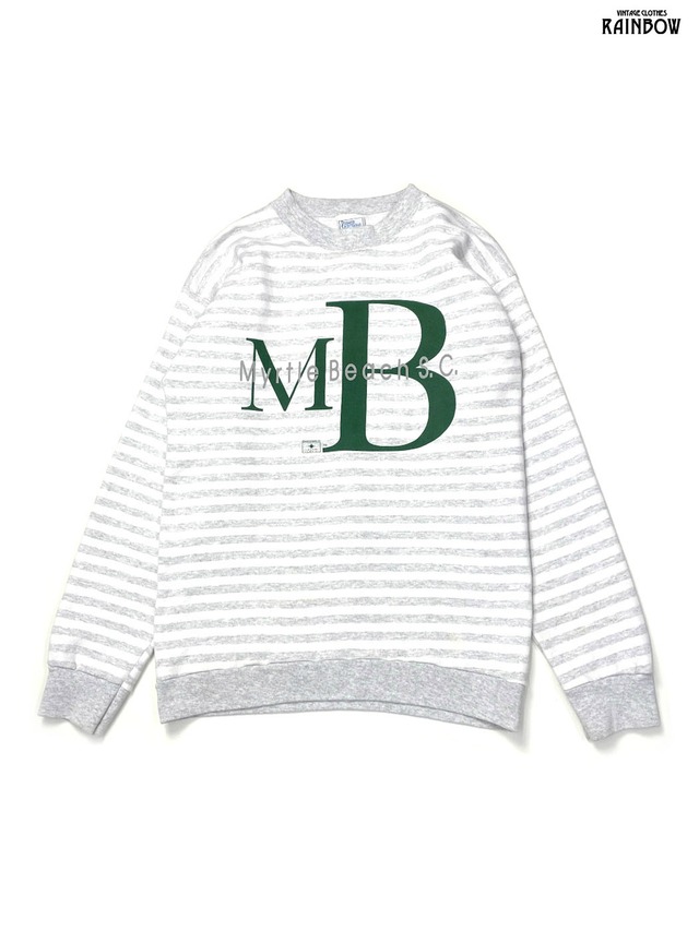古着 PREMIER SPORTSWEAR アメリカ製 ボーダー柄 ロゴ 長袖 スウェット トレーナー ライト グレー (ttu2510052)