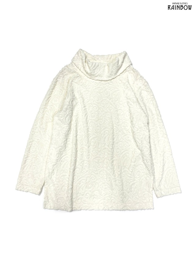 古着 Blushe アメリカ製 スリット ハイネック 総柄 長袖 トップス プルオーバー 白 生成り (ttu2510094)