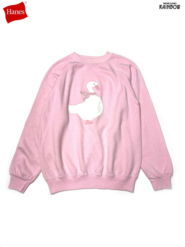 古着 Hanes ヘインズ アヒル プリント 長袖 スウェット トレーナー ピンク (ttu2601056)