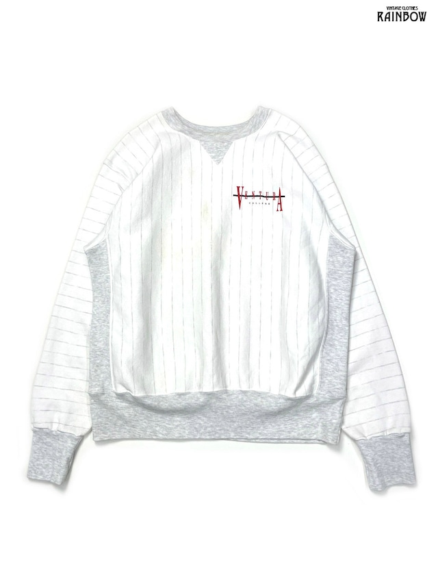古着 COLLEGE HOUSE アメリカ製 ストライプ柄 ロゴ 長袖 スウェット トレーナー 白 (ttu2510051)