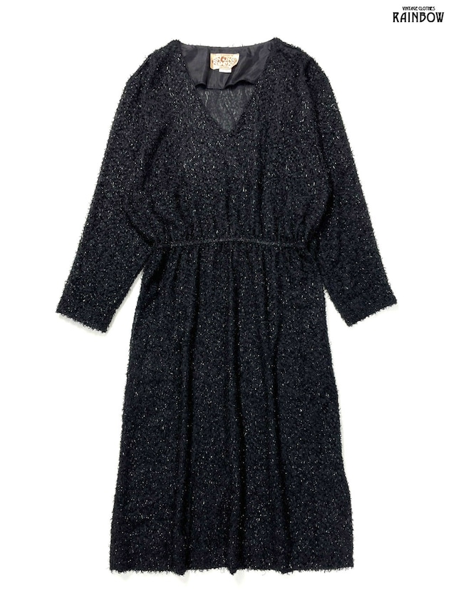 古着 ラメ 無地 ロング丈 長袖 ワンピース 黒 (otu2601084)