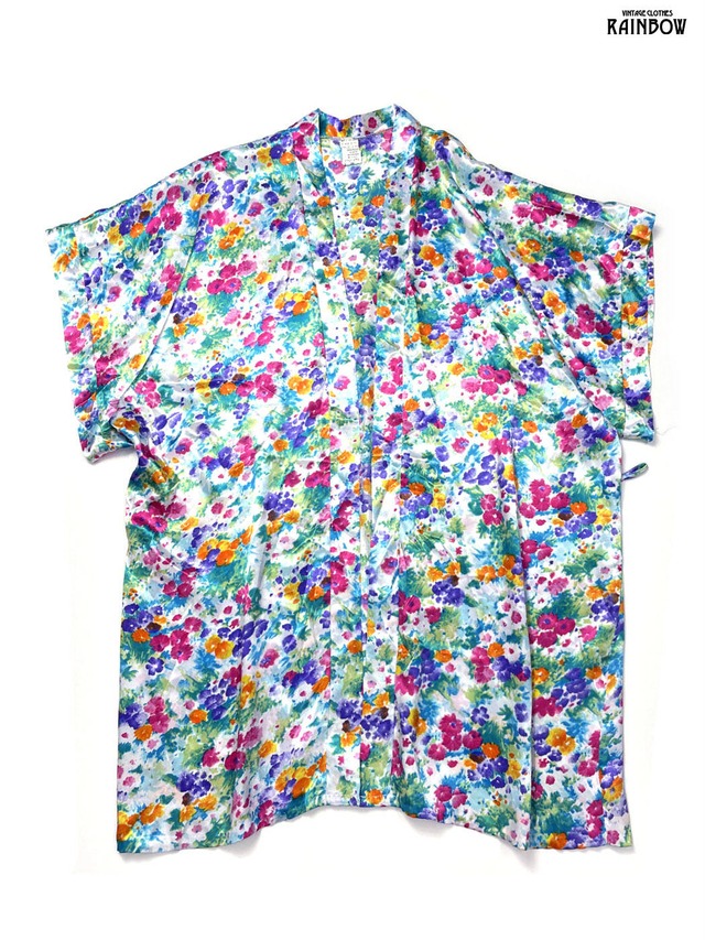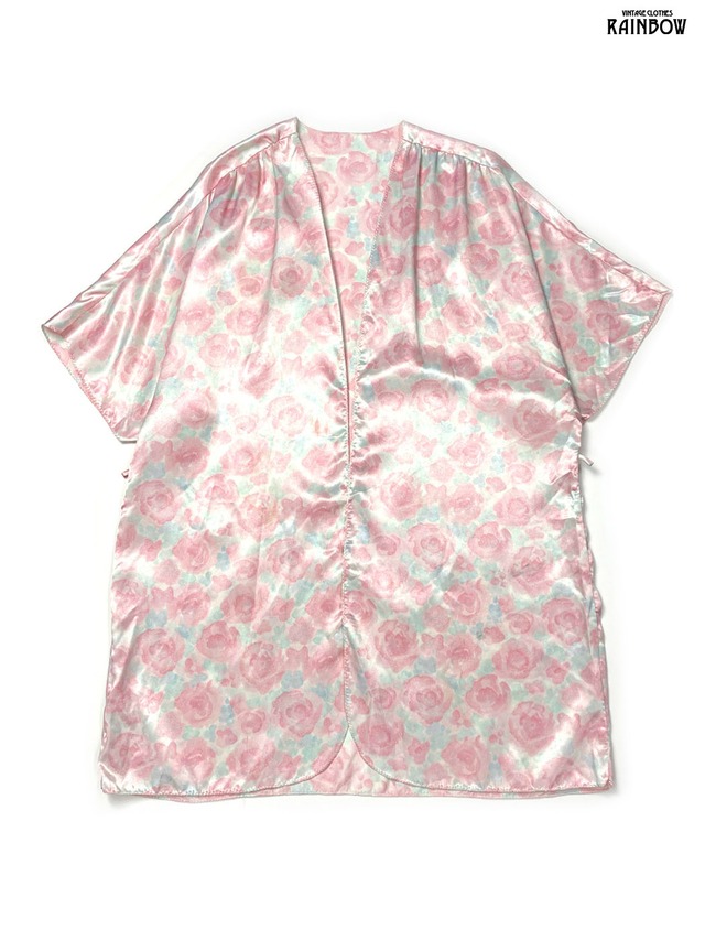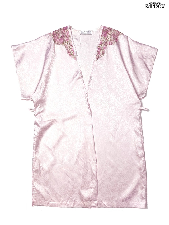 古着 VAL MODE LINGERIE アメリカ製 フローラル ジャガード織り 花柄 サテン 半袖 アウター 羽織り ピンク (ttu2601156)