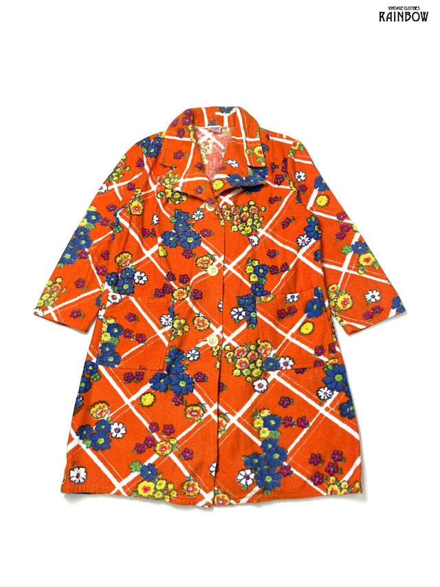 古着 花柄 コットン パイル地 長袖 アウター ライトコート オレンジ (ttu2601132)