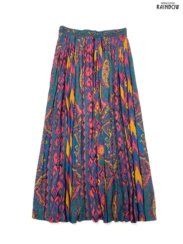古着 Bonnie Boynton スタッズ アメリカ製 総柄 エスニック柄 ロング丈 スカート ピンク 緑 (btu2510010)