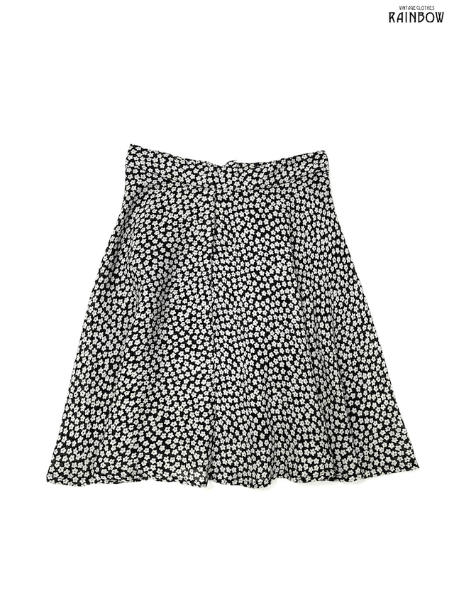 古着 P&S アメリカ製 花柄 ミニ丈 スカート 黒 白 (btu2601045)