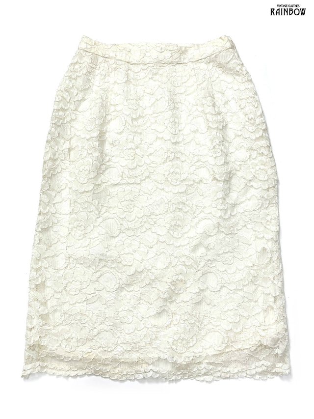 ■商品説明 ■表地 表示なし。総レース素材です。 ■裏地 総裏地:表示なし。アセテートのような素材です。 ■表示サイズ 5/6 ■着脱方法 後ろファスナーとホックです。 ■ポケット ポケット無し ■コンディション 【コンディション:B】所々にシミがございます。 ■実寸サイズ ウエスト68cm ヒップ96cm スカート丈64cm ■ブランド ■キーワード #スカート #膝丈 #タイト #ベージュ #無地 #ヴィンテージ #総レース #総レーススカート