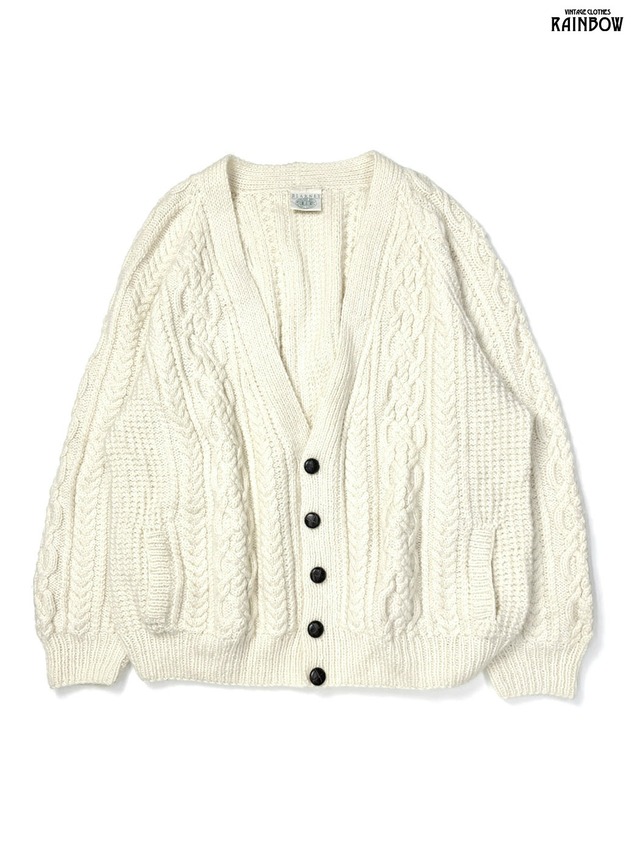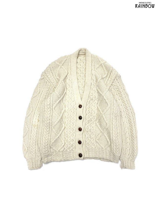 古着 BLARNEY Woollen Mills ケーブル編み 無地 ピュアウール100% 長袖 フィッシャーマン ニット カーディガン 生成り (ttu2511087)