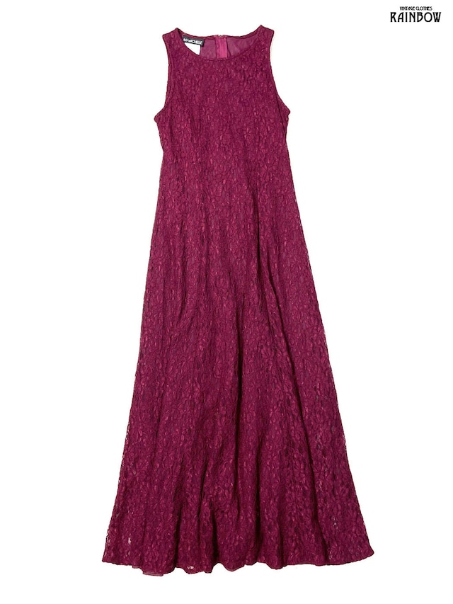 古着 MY MICHELLE 編み上げリボン 総レース ロング丈 ノースリーブ ワンピース 赤 ボルドー (otu2512018)