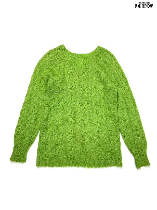 古着 ケーブル編み 無地 モヘア 長袖 ニット セーター 緑 (ttu2511081)