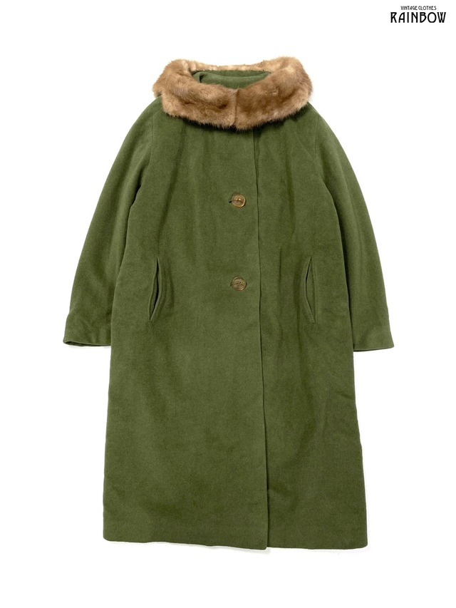 古着 Surrella ファー襟 前開き ユニオンメイド 無地 ウール 長袖 アウター ヘビーコート 緑 (ttu2511013)