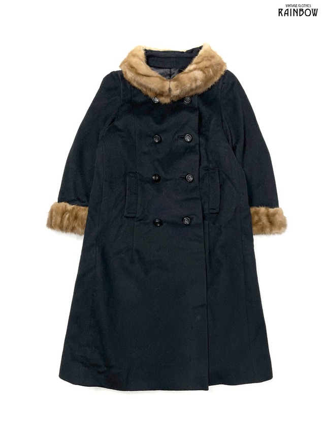 古着 ファー 前開き ユニオンメイド 無地 ウール 長袖 アウター ヘビーコート 黒 (ttu2511014)