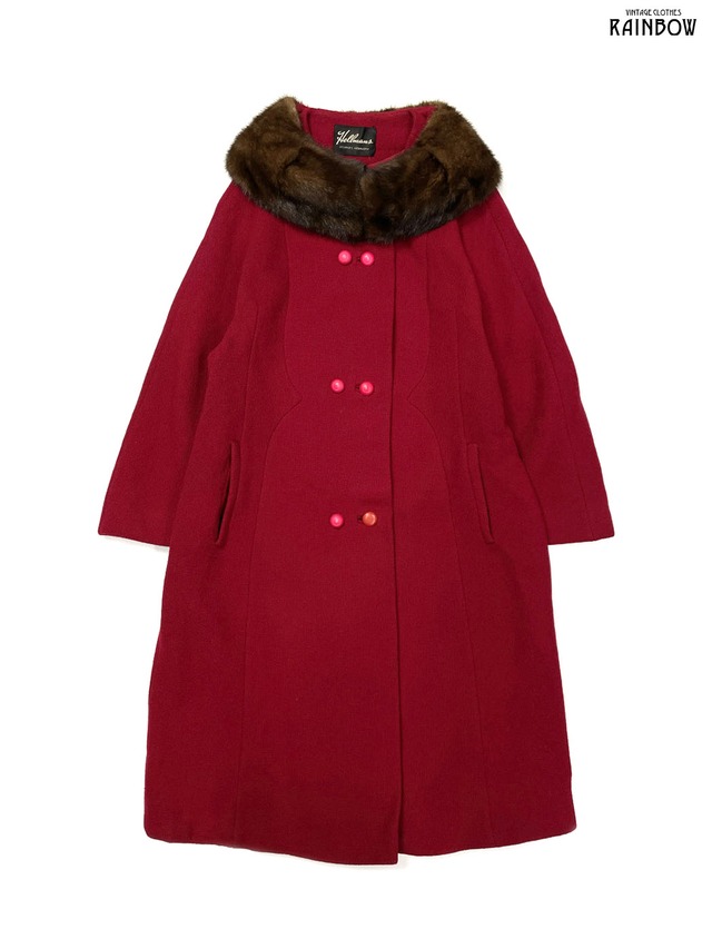 古着 Hellmans 前開き ユニオンメイド 無地 ウール 長袖 ファー アウター ヘビーコート 赤 (ttu2511011)