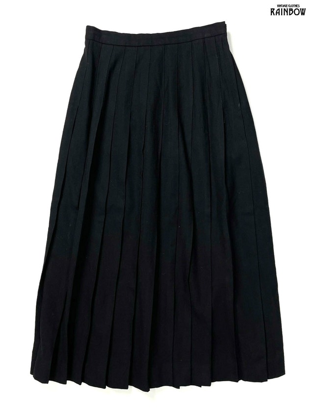 古着 タルボット Talbots アメリカ製 無地 ピュアウール ロング丈 プリーツ スカート 黒 (btu2512035)