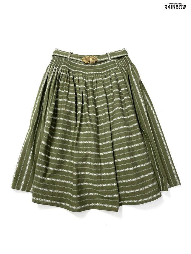 古着 ベルト付き 花柄 コットン100% ミニ丈 スカート 緑 (btu2508022)