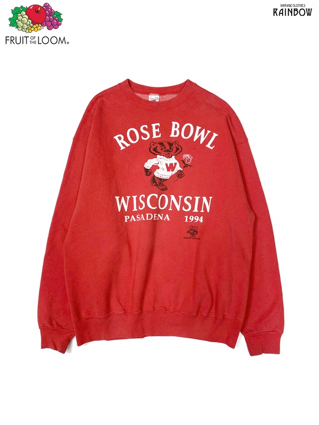 古着 FRUIT OF THE LOOM フルーツオブザルーム ROSE BOWL WISCONSIN トラ アメリカ製 プリント アニマル 長袖 スウェット トレーナー 赤 (ttu2511113)
