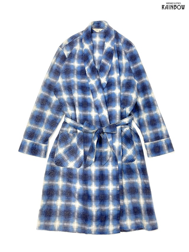 ■商品説明 ■表地 コットン65% ポリエステル35% ■裏地 裏地なし。 ■表示サイズ M ■着脱方法 羽織りタイプです。 ■ポケット ポケット付き 両サイドに各1箇所 ■コンディション 【コンディション:B】ベルトループ付近に補修跡がございます。 ■実寸サイズ 身幅55cm 肩幅44cm 袖丈60cm 着丈110cm ■ブランド J.C.Penney ジェイシーペニー ■キーワード #アウター #羽織り #ロングスリーブ #青 #チェック柄 #ベルト付き #コットン #ガウン