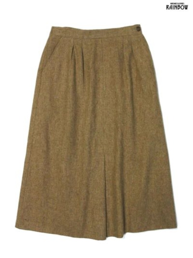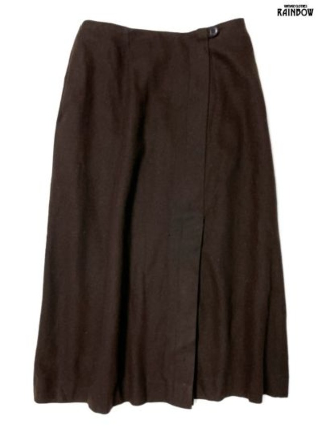 ヴィンテージ レトロ 古着 スリット ユニオンメイド 無地 ウール 膝丈 スカート 茶 (btu2312080)
