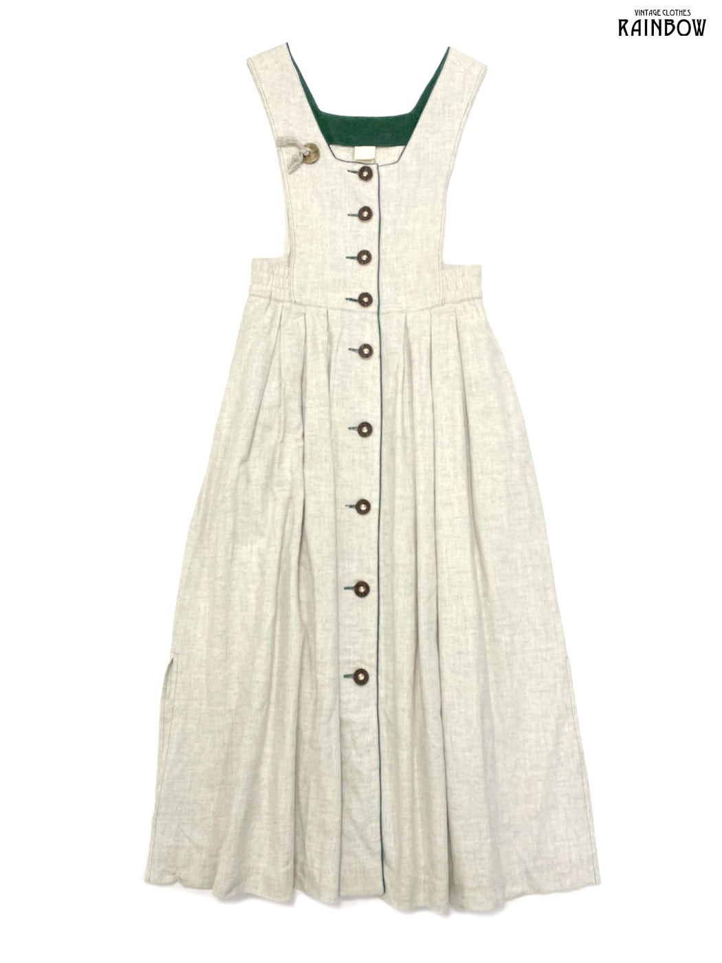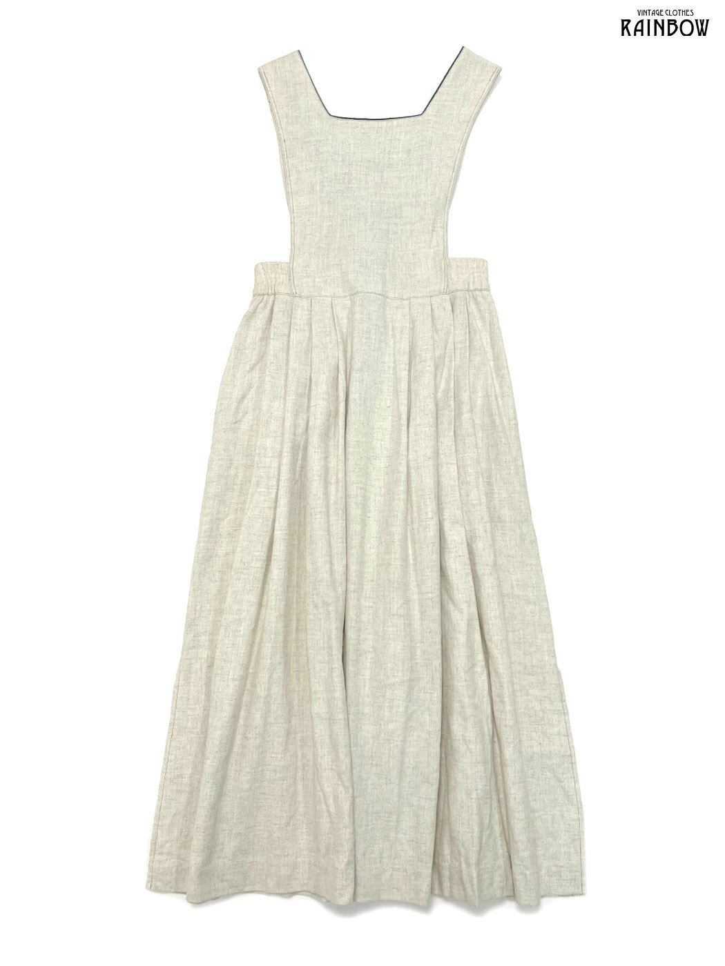 #ワンピース #ノースリーブ #ロング丈 #フレア #ゴムウエスト #ウエスト切り替え #ベージュ #無地 #前開き #ナチュラル #コットン #リネン #リネンワンピース