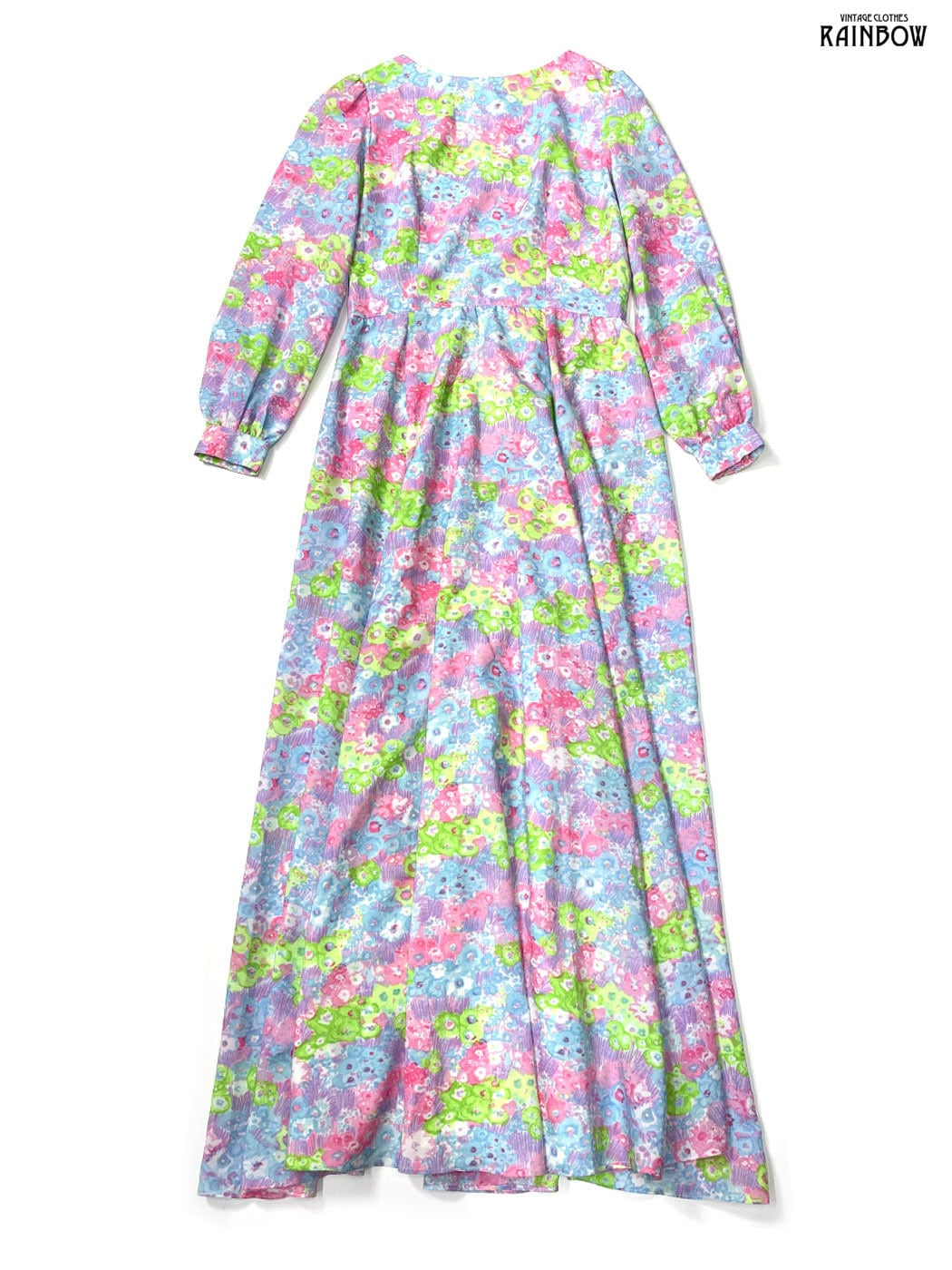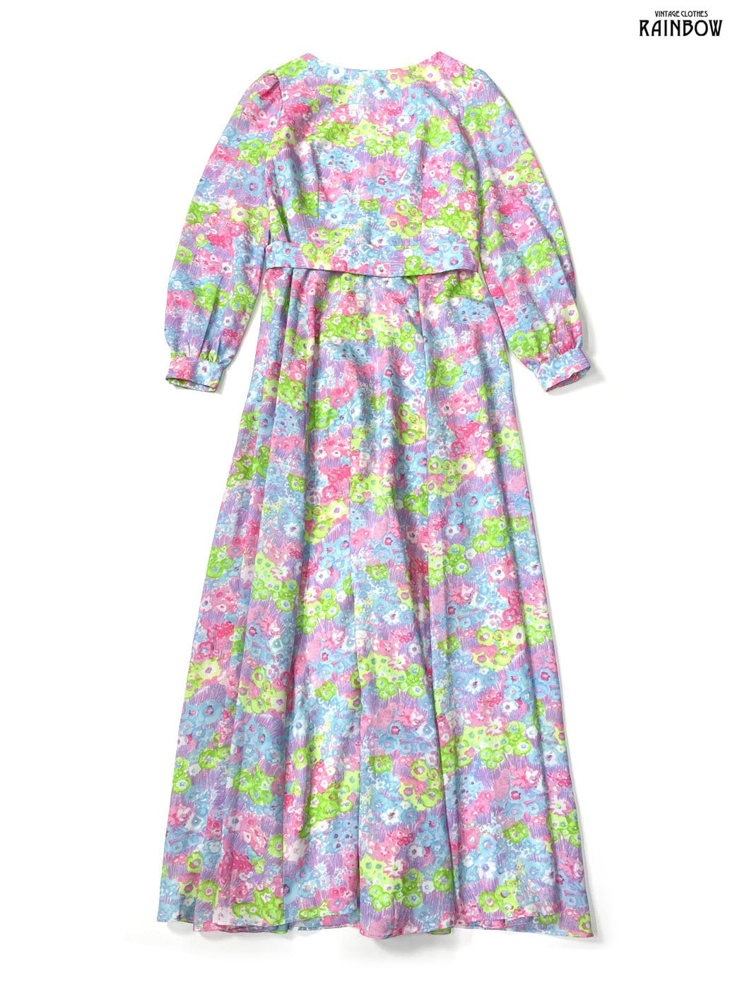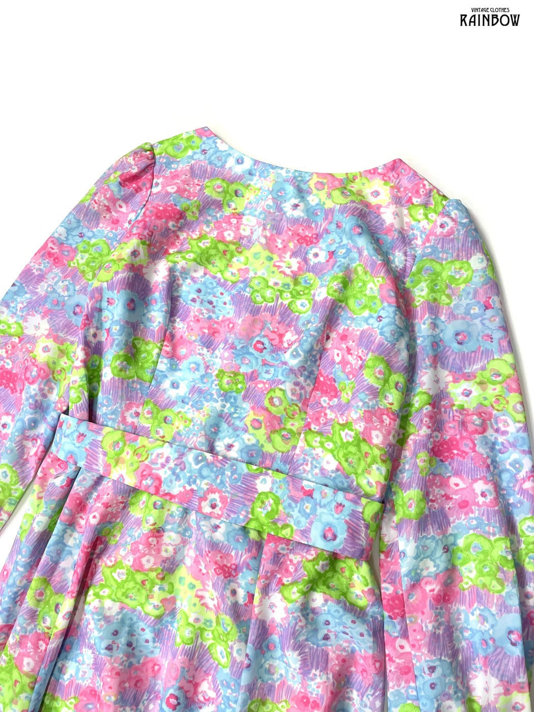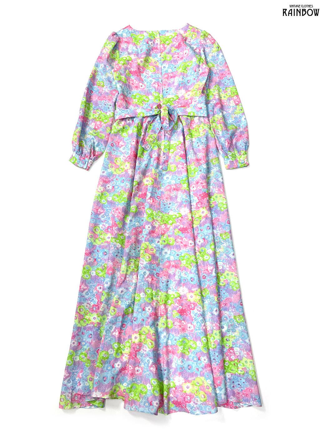 #ワンピース #ロングスリーブ #ロング丈 #ウエスト切り替え #ピンク #花柄 #ベルト付き #ガーリー #長袖花柄ワンピース