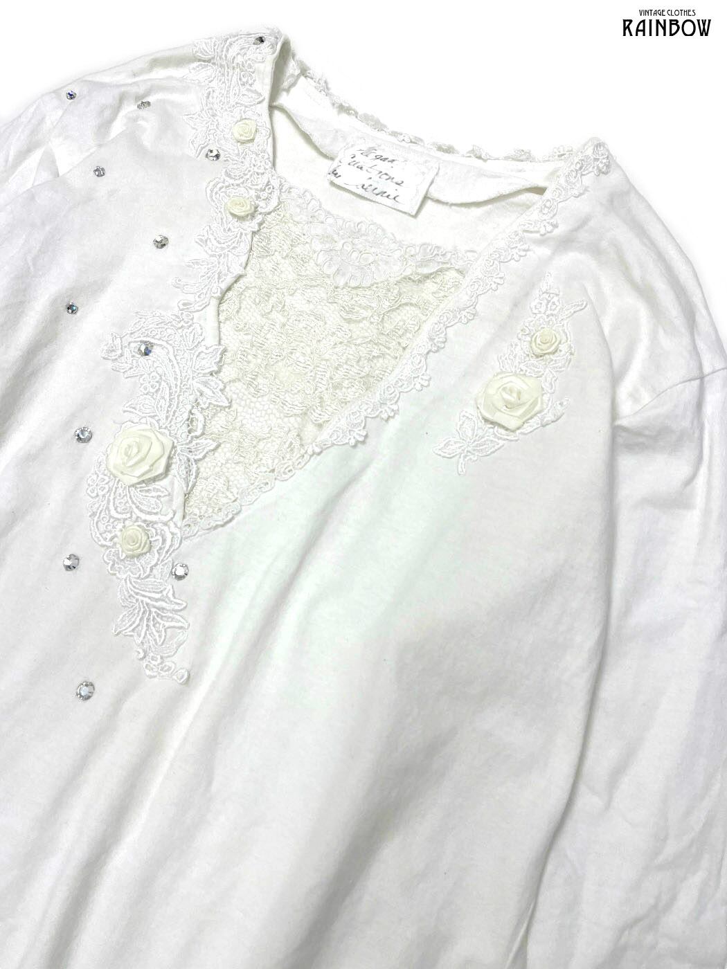 #ロングスリーブ #ロング丈 #白 #生成り #無地 #アメリカ製 #レース #ナチュラル #ヴィンテージ #コットン #レースワンピース