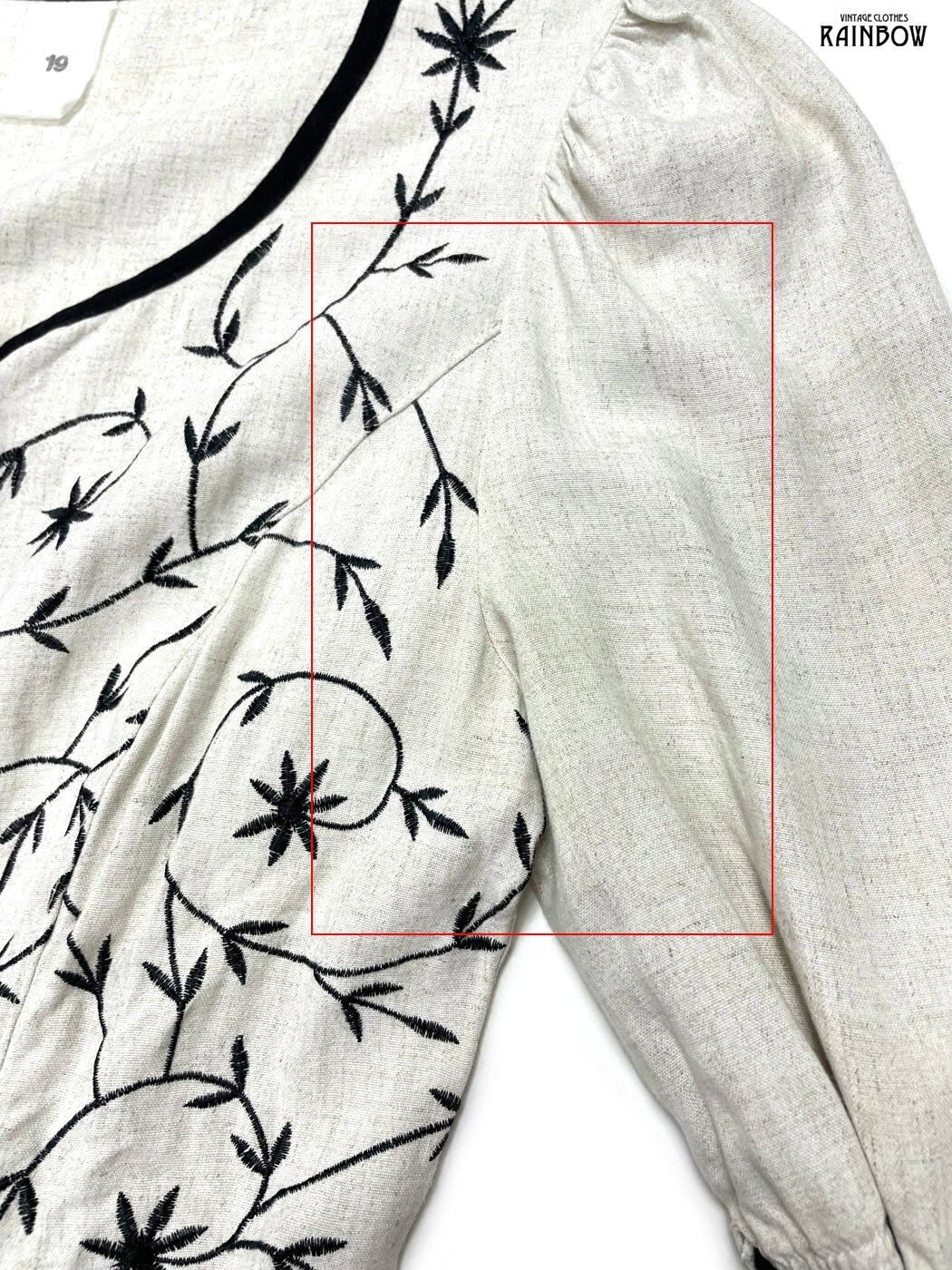 #ワンピース #ハーフスリーブ #ロング丈 #ウエスト切り替え #ベージュ #総柄 #刺繍 #前開き #スリット #ヴィンテージ #レーヨン #刺繍ワンピース
