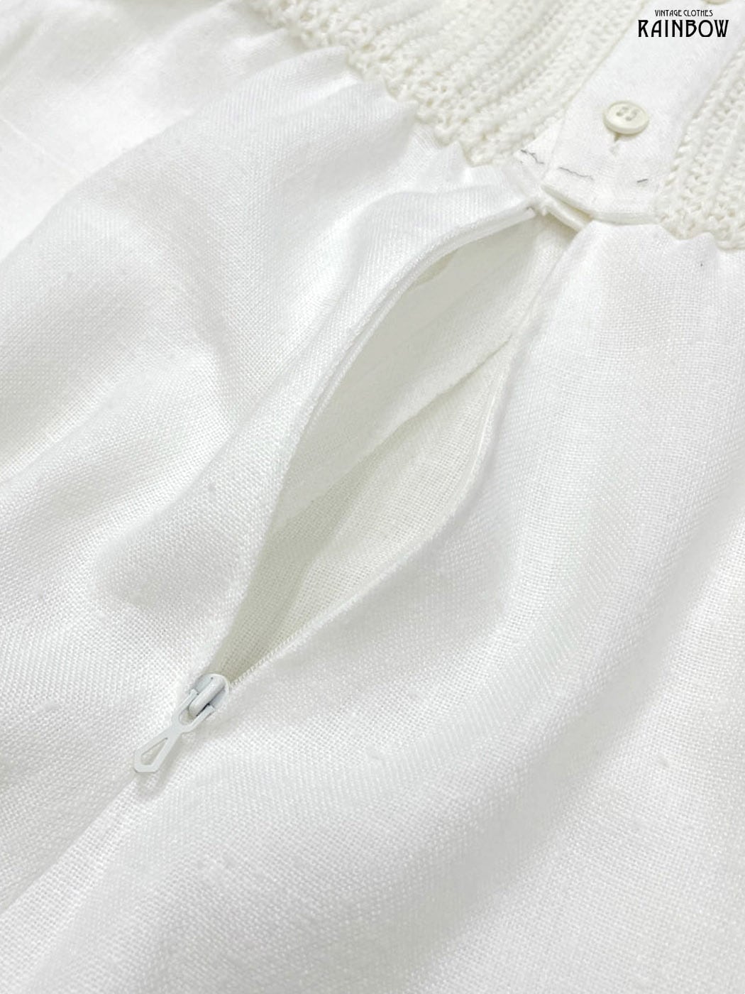 #ワンピース #ハーフスリーブ #ロング丈 #フレア #ゴムウエスト #ウエスト切り替え #白 #生成り #無地 #フランス製 #ニット切替 #ガーリー #コットン #半袖無地ワンピース