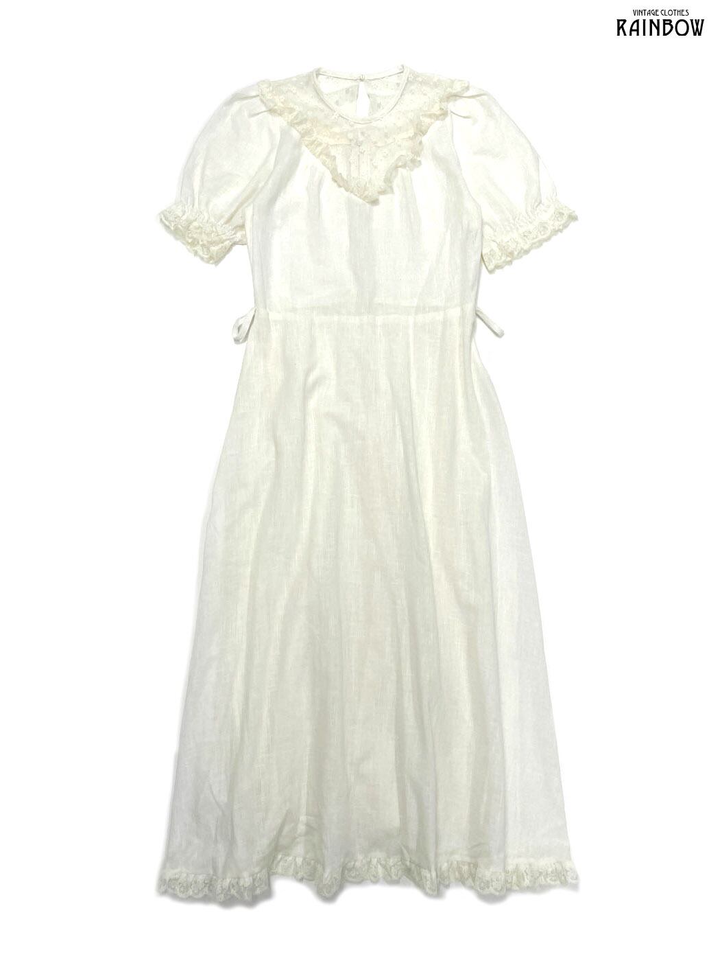 #ワンピース #ハーフスリーブ #ロング丈 #フレア #ウエスト切り替え #白 #生成り #無地 #フリル #リボン #レース #ベルト付き #花柄レース #パフスリーブ #ガーリー #コットン #レースワンピース