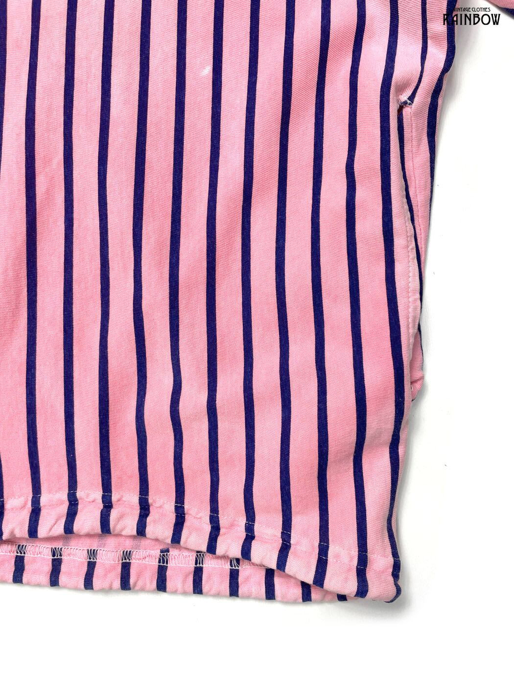 #トップス #プルオーバー #ハーフスリーブ #ピンク #ボーダー柄 #ストライプ柄 #ロゴデザイン #BP504 #コットン #半袖柄プルオーバー
