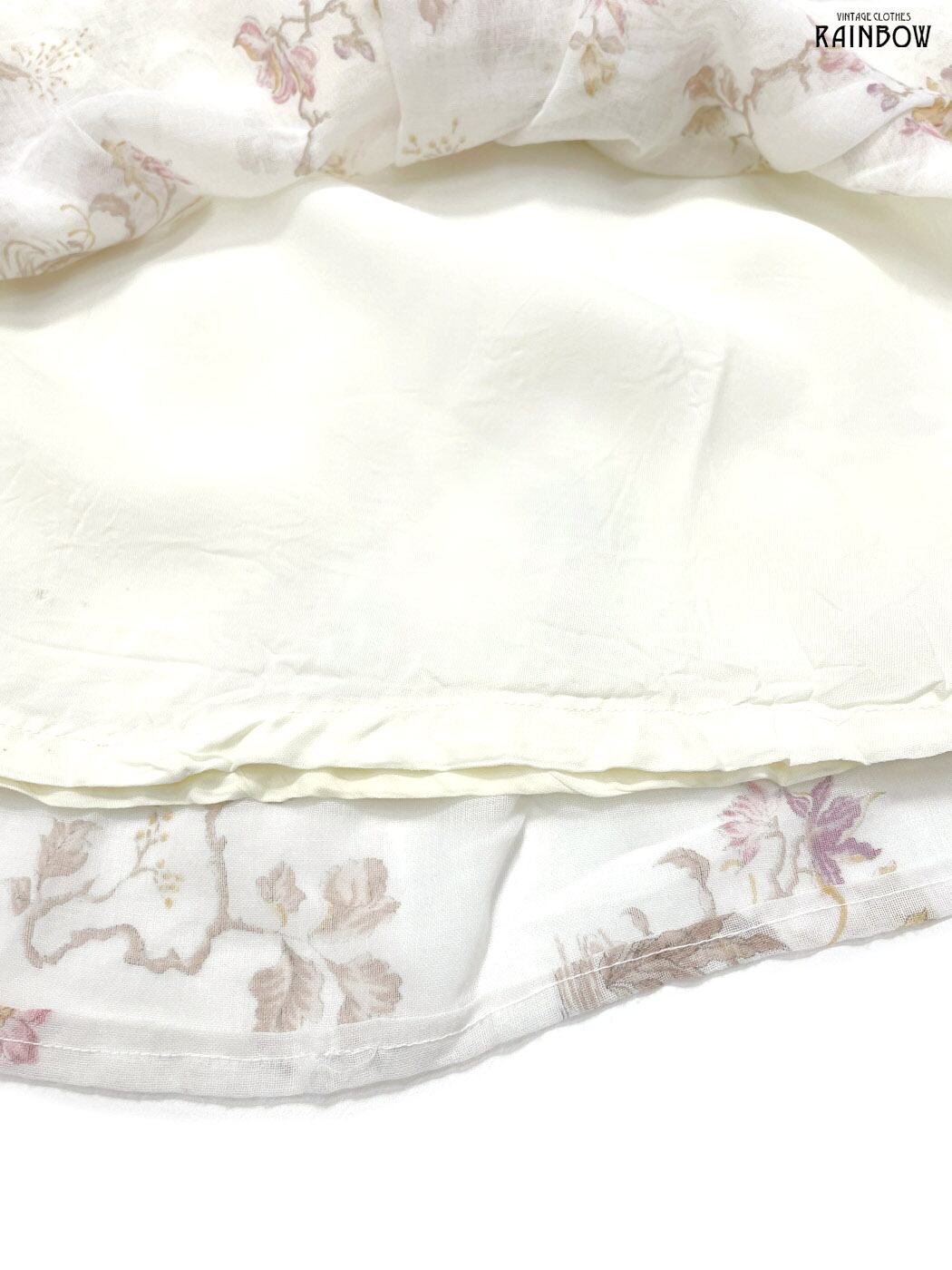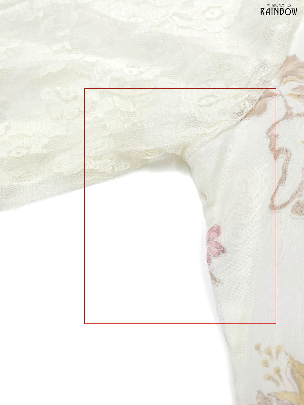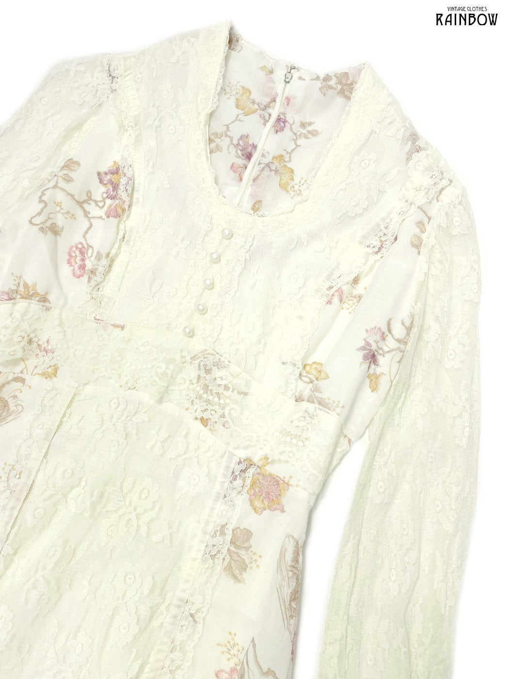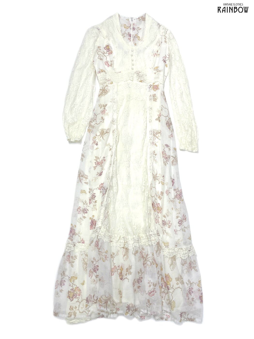 古着 レース TALONジップ 花柄 シフォン 総レース ロング丈 長袖 ワンピース ベージュ (otu2503056)
