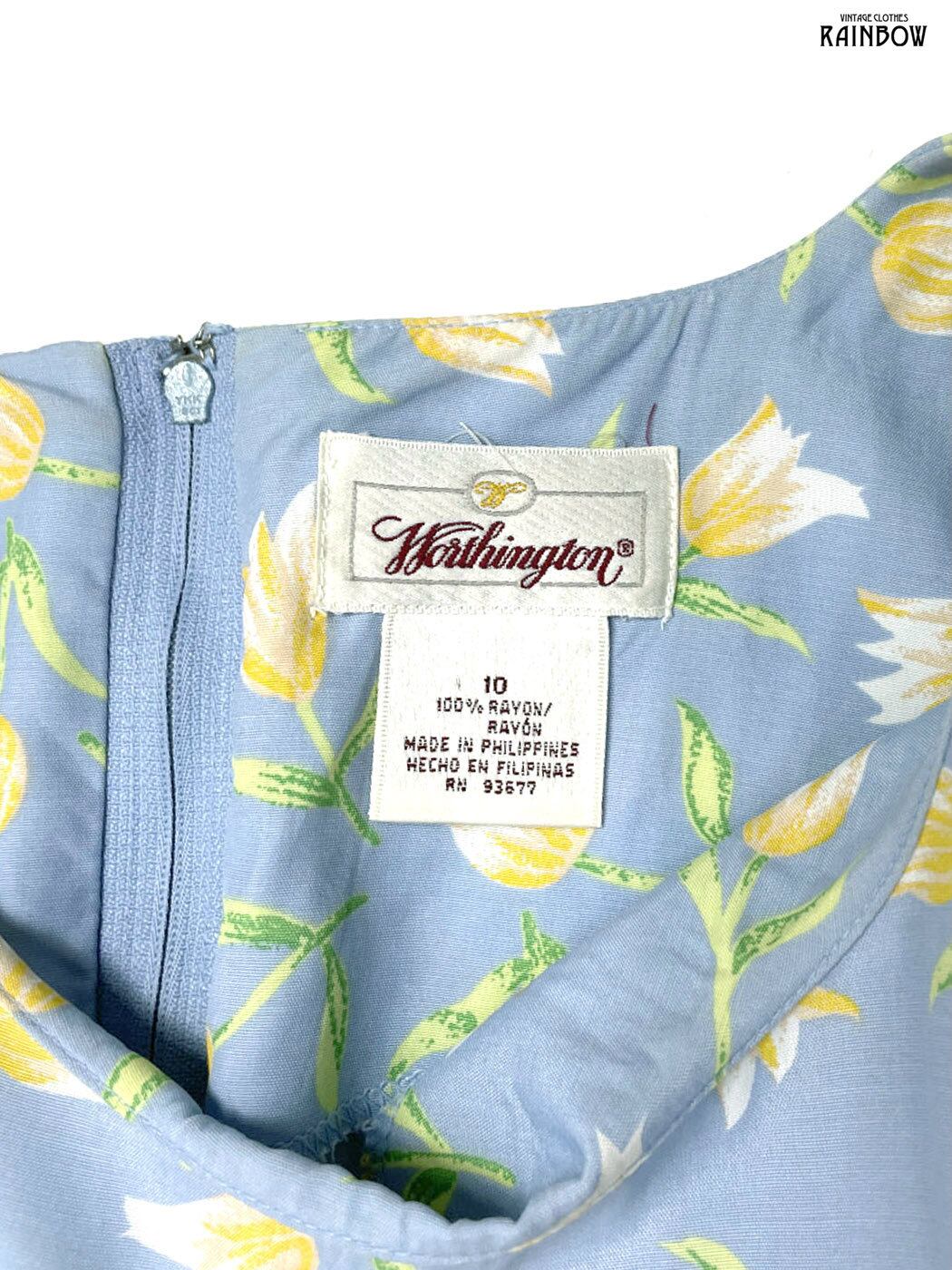 #ワンピース #ハーフスリーブ #ロング丈 #ウエスト切り替え #青 #水色 #花柄 #チューリップ #リボン #ガーリー #レーヨン #半袖花柄ワンピース