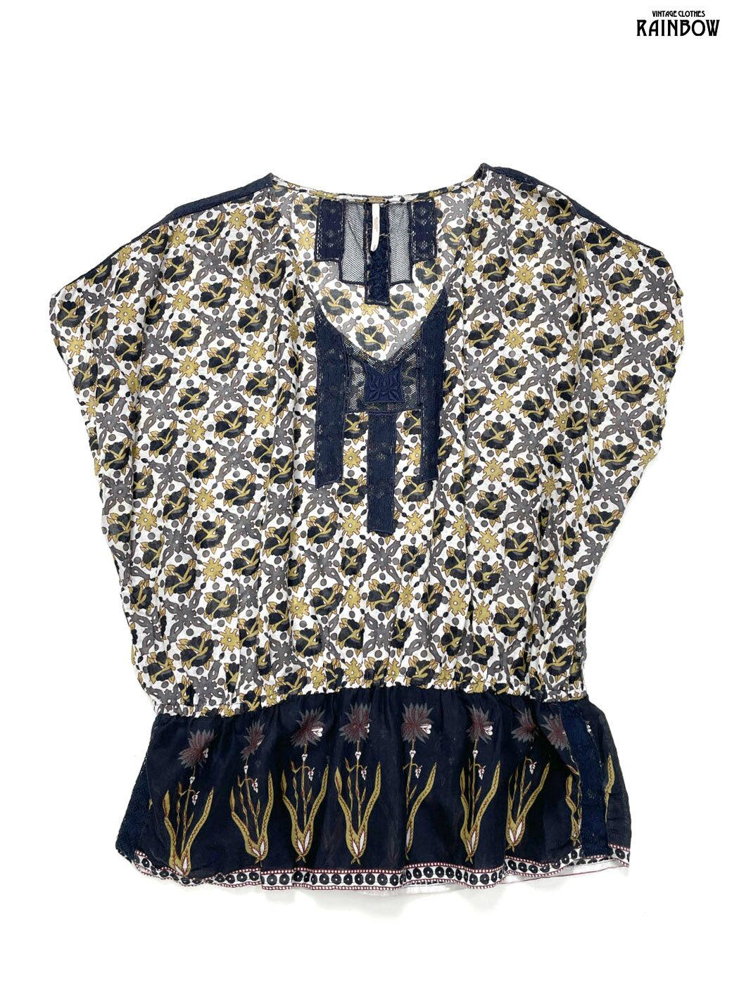 #ブラウス #bブラウス #ハーフスリーブ #紺 #花柄 #レース #クラシック #コットン #半袖柄ブラウス