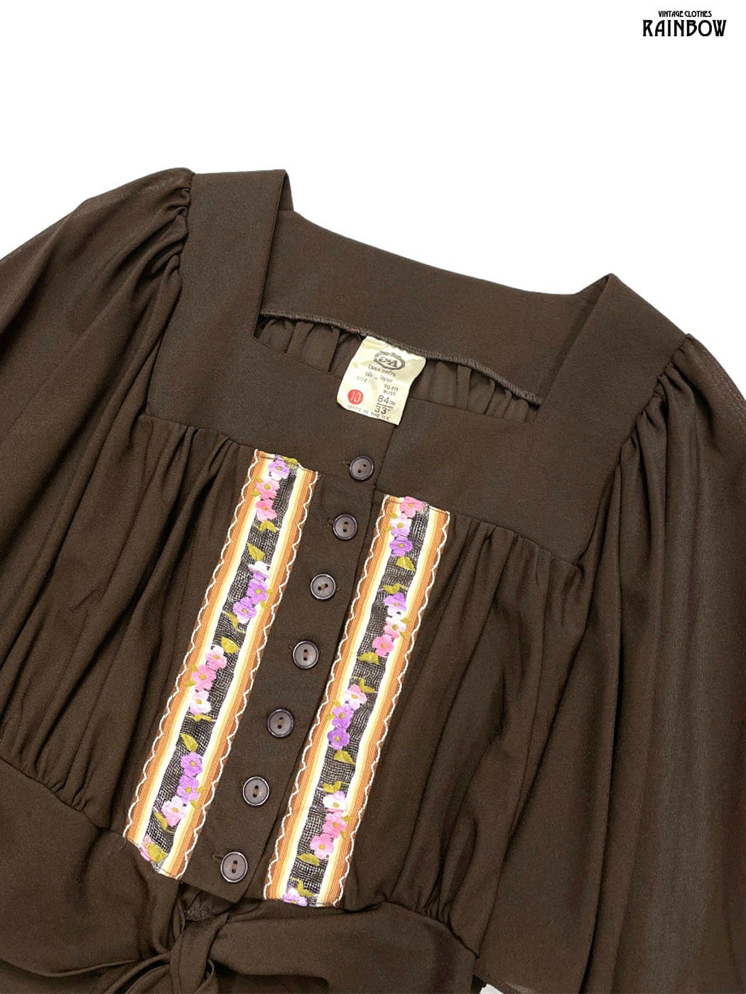 #ブラウス #bブラウス #ハーフスリーブ #茶 #花柄 #イギリス製 #刺繍 #クラシック #ナイロン #半袖柄ブラウス