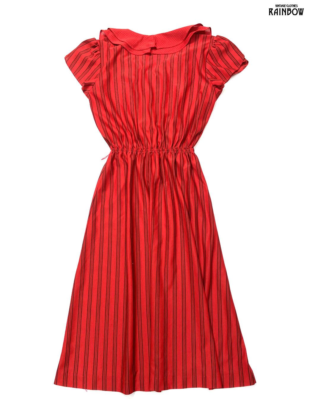 #ワンピース #ハーフスリーブ #ロング丈 #ゴムウエスト #赤 #ストライプ柄 #半袖ストライプ柄ワンピース