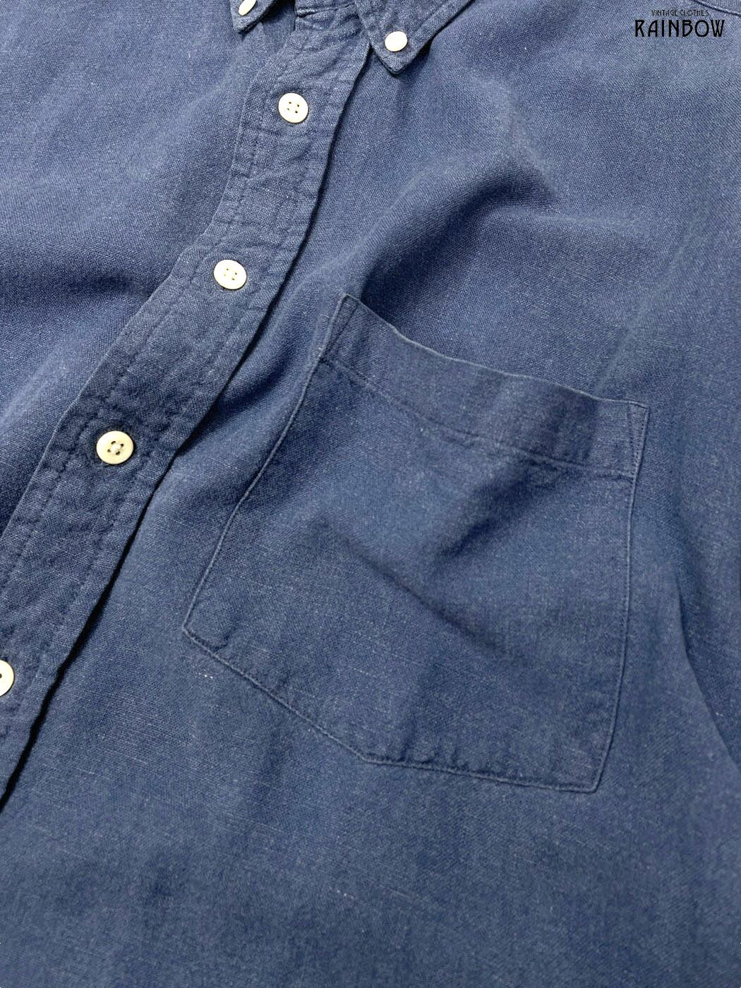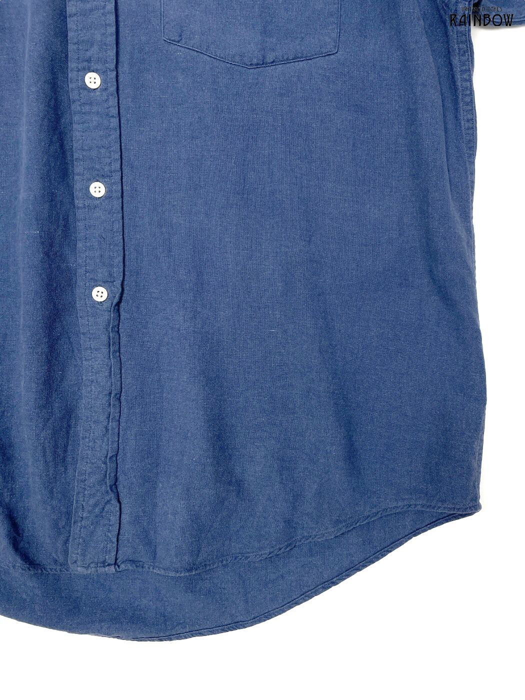 #ブラウス #シャツ #ハーフスリーブ #青 #無地 #前開き #ヴィンテージ #リネン #レーヨン #リネンシャツ