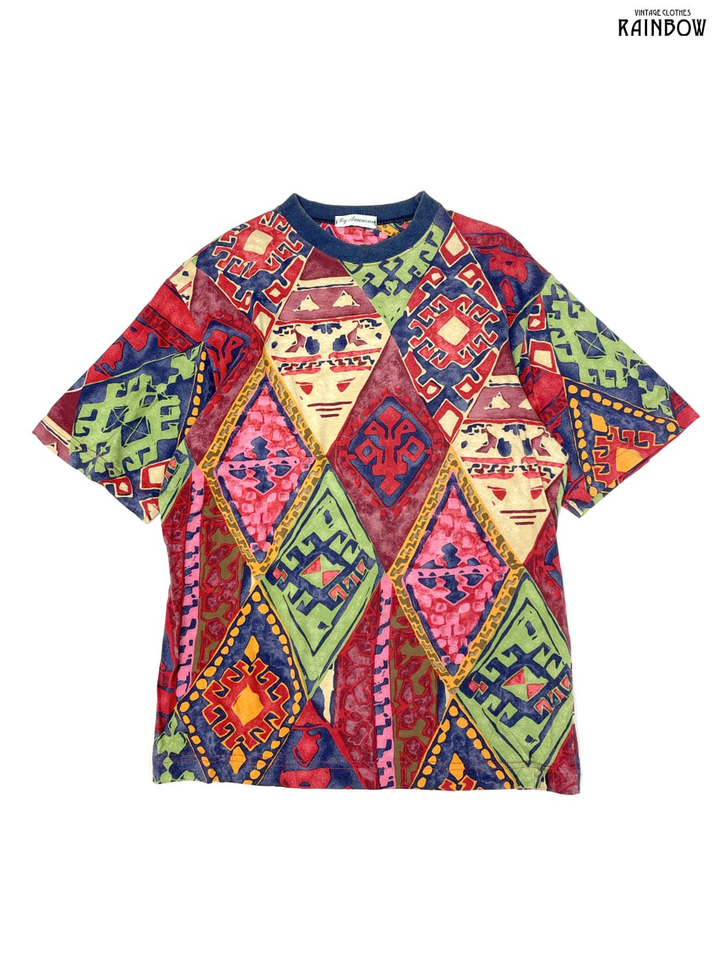 #トップス #Tシャツ #ハーフスリーブ #赤 #総柄 #ヴィンテージ #カットソー地 #半袖柄Tシャツ