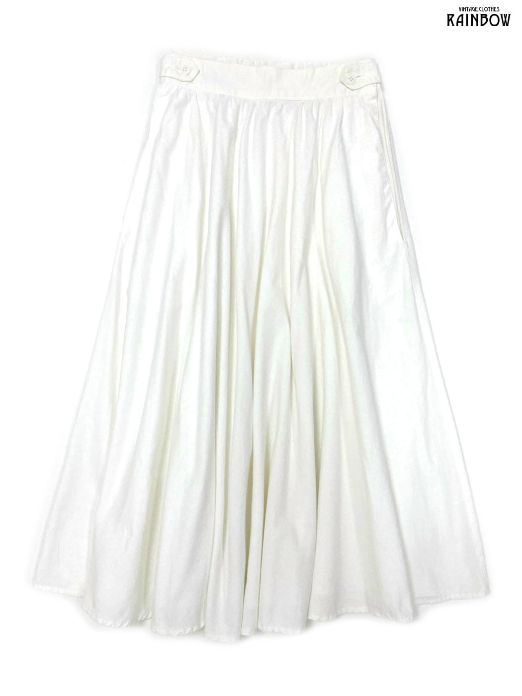 #スカート #膝丈 #フレア #ゴムウエスト #白 #無地 #ガーリー #コットン #無地ライトスカート