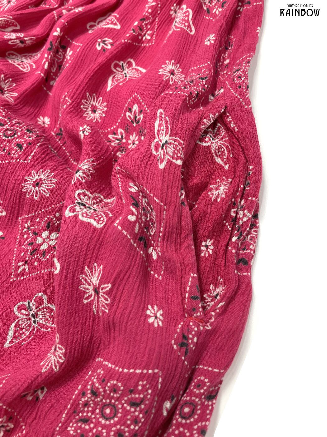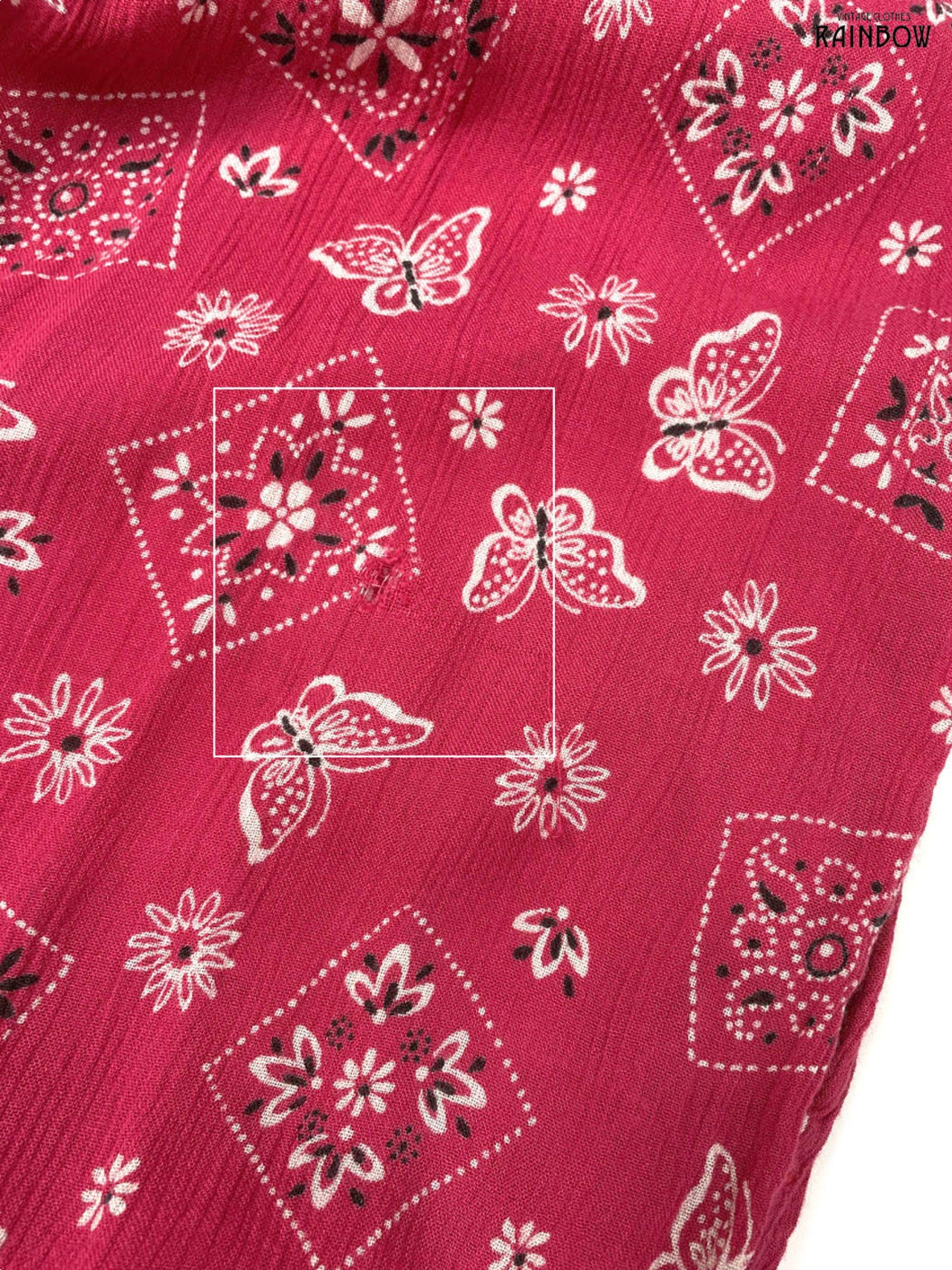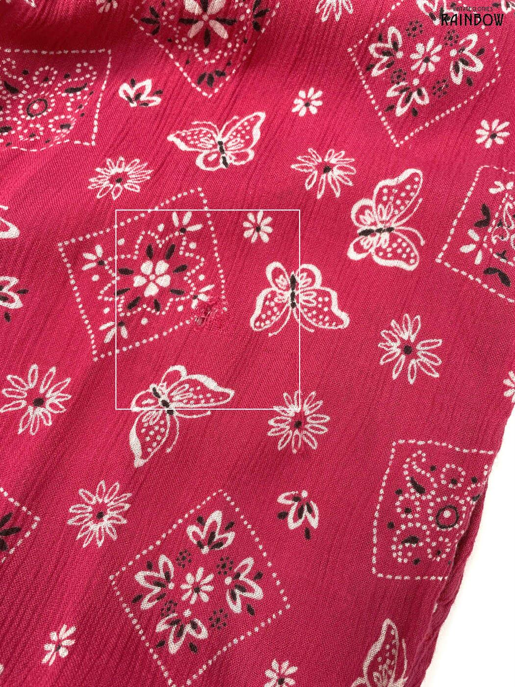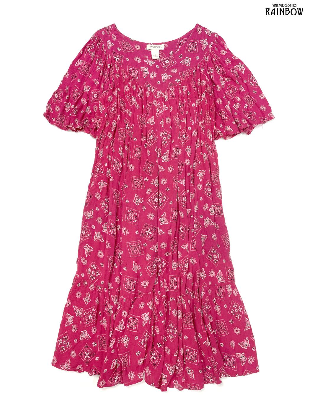 #ワンピース #ハーフスリーブ #ロング丈 #フレア #ティアード #ピンク #総柄 #蝶々柄 #ガーリー #レーヨン #半袖総柄ワンピース