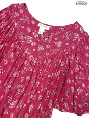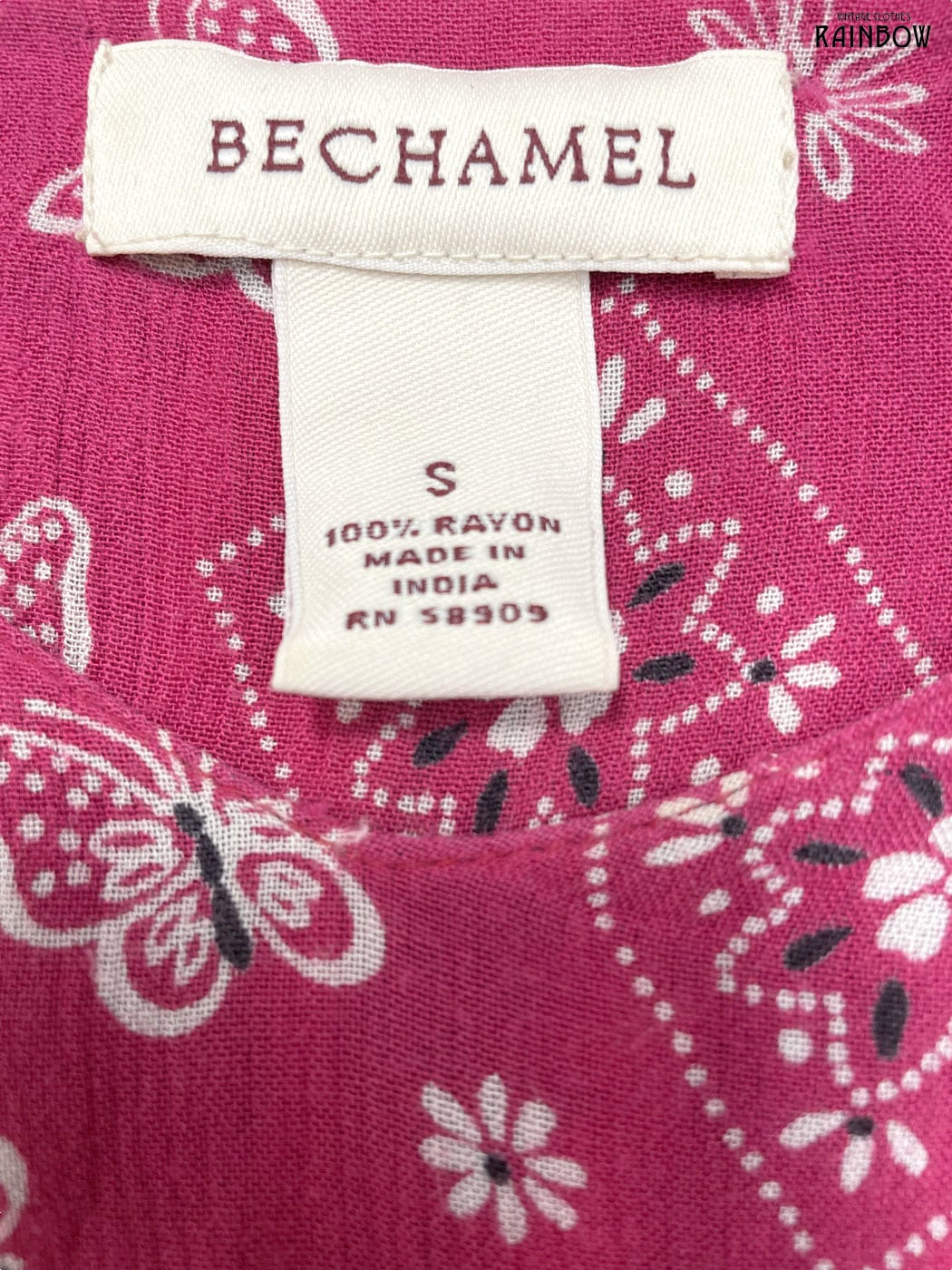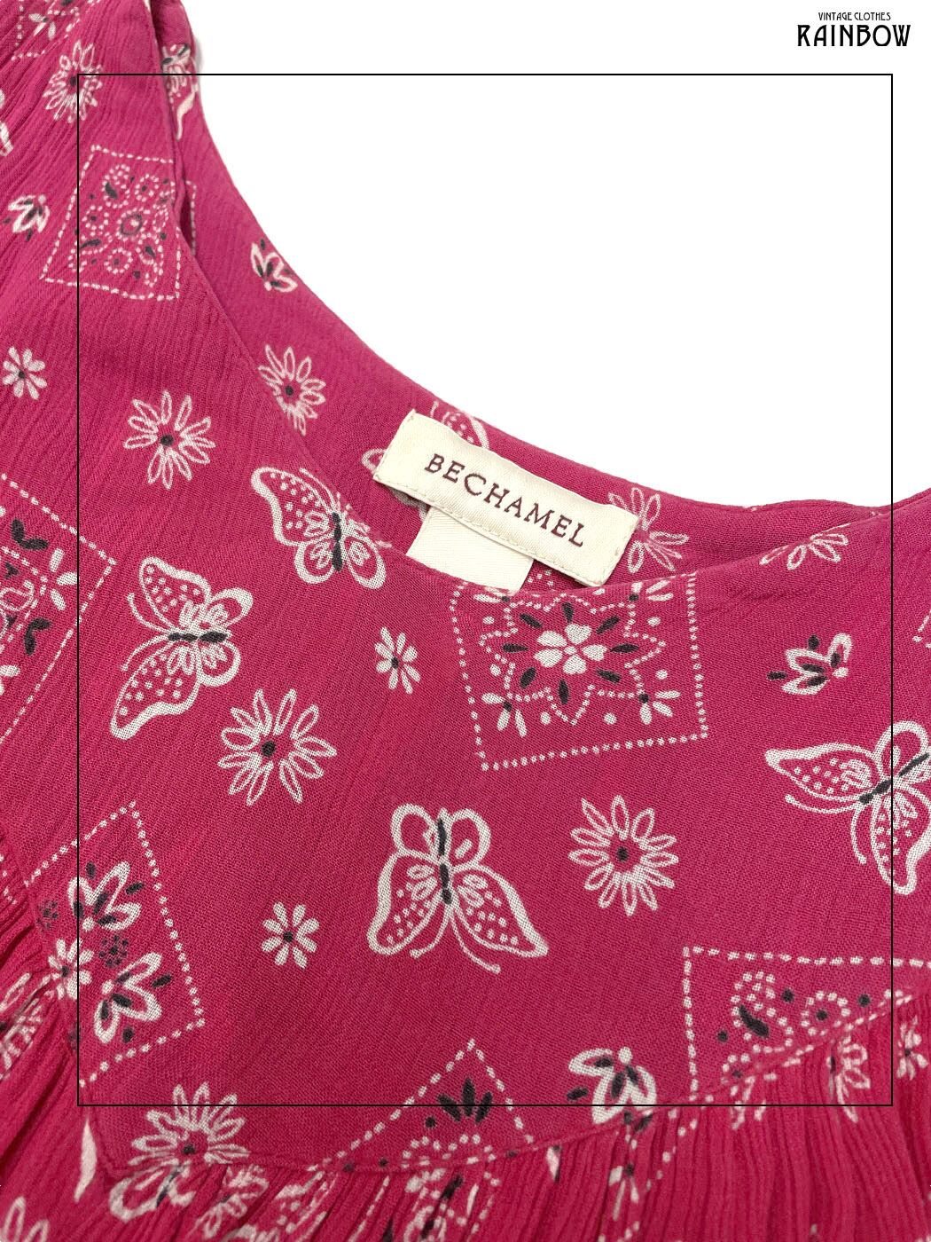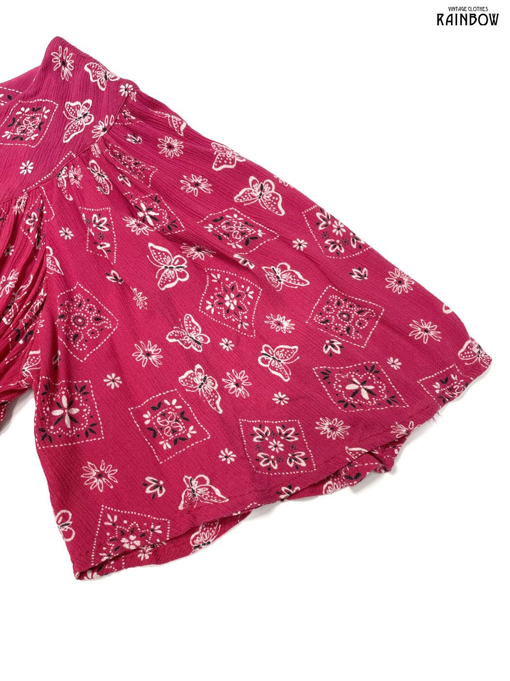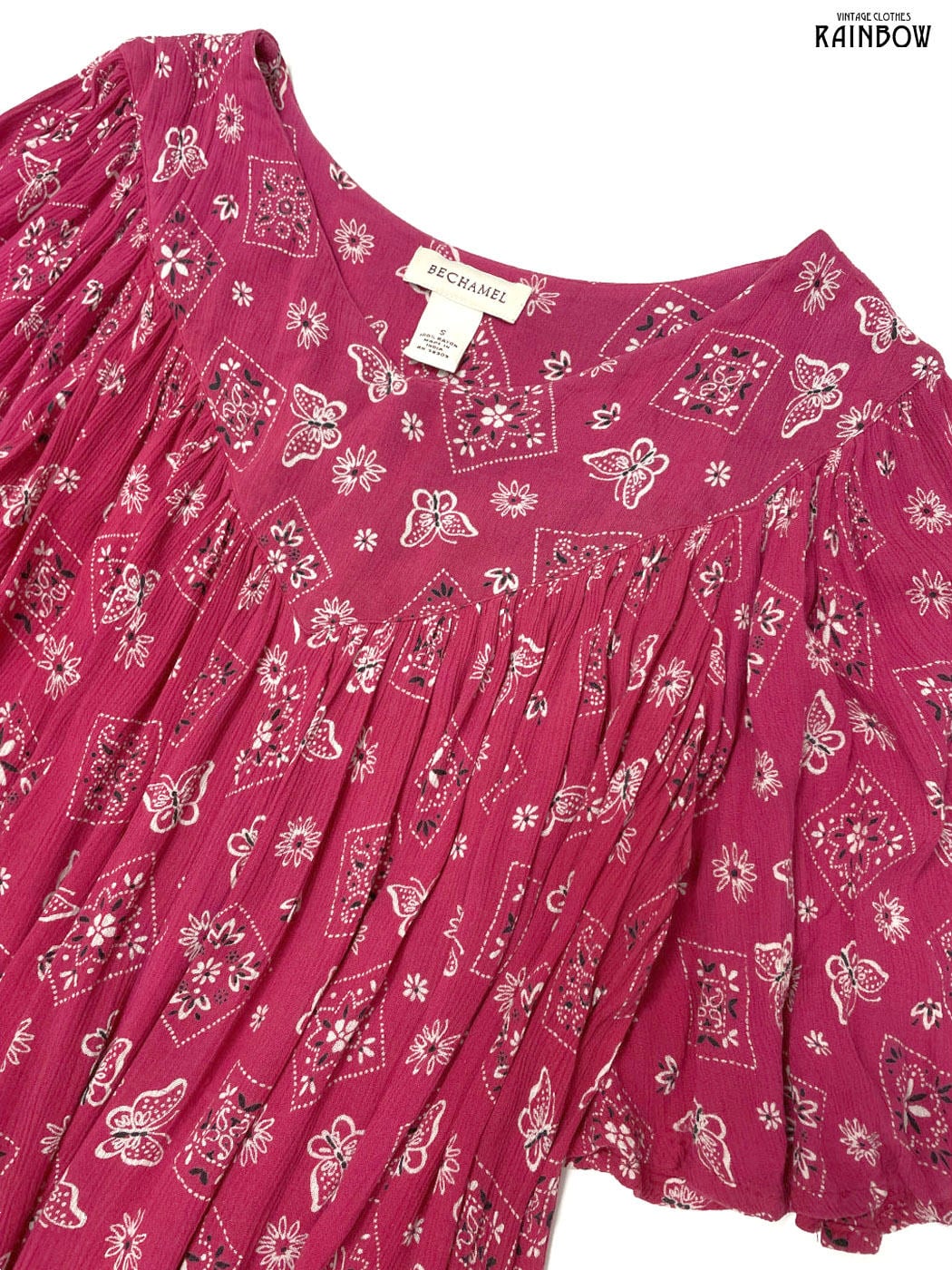#ワンピース #ハーフスリーブ #ロング丈 #フレア #ティアード #ピンク #総柄 #蝶々柄 #ガーリー #レーヨン #半袖総柄ワンピース