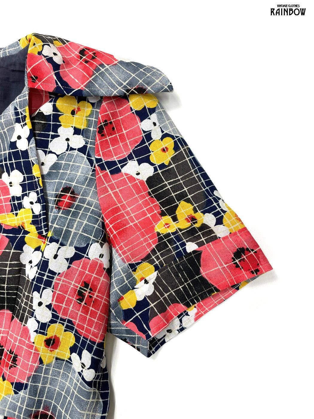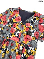 #ワンピース #ハーフスリーブ #ミニ丈 #ウエスト切り替え #赤 #紺 #花柄 #シフォン #シフォンワンピース