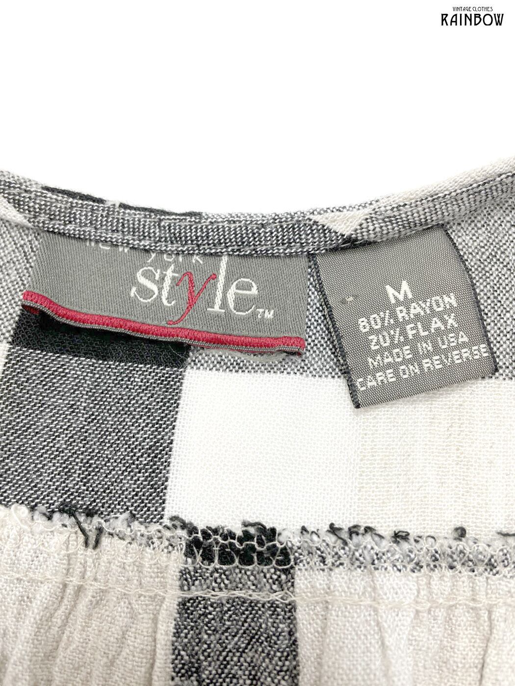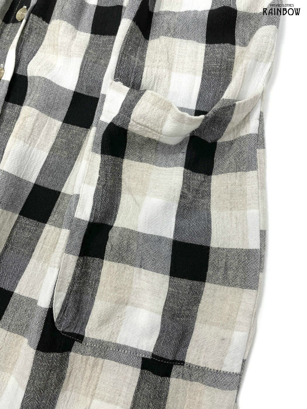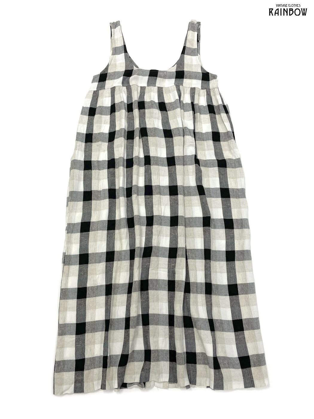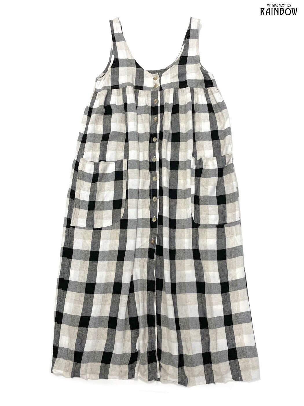 古着 style アメリカ製 前開き チェック柄 ロング丈 ノースリーブ ワンピース 黒 ベージュ (otu2504272)