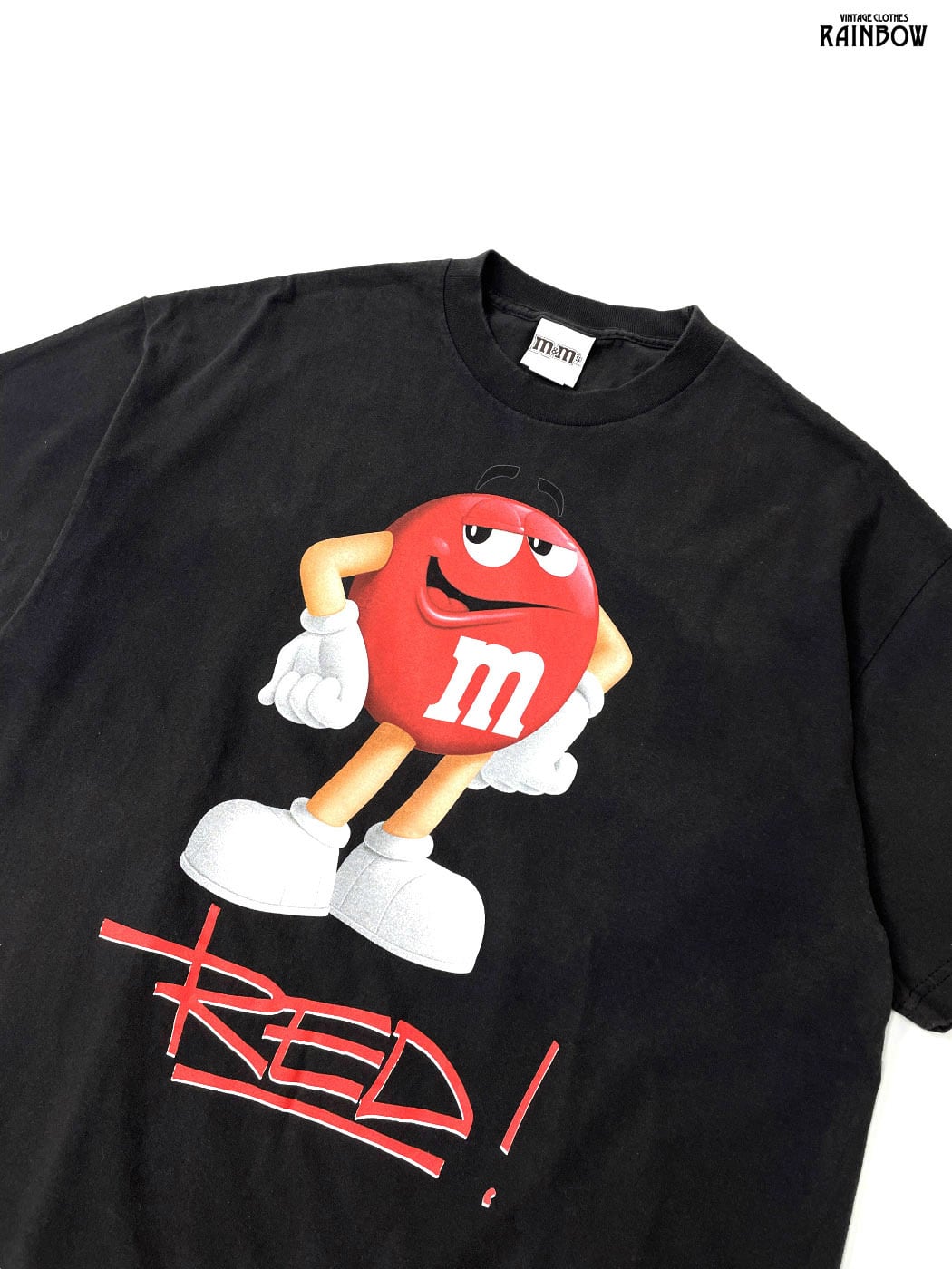 古着 M&M's エムアンドエムズ レッド アメリカ製 プリント キャラクター コットン100% 半袖 Tシャツ 黒 (ttu2505009)