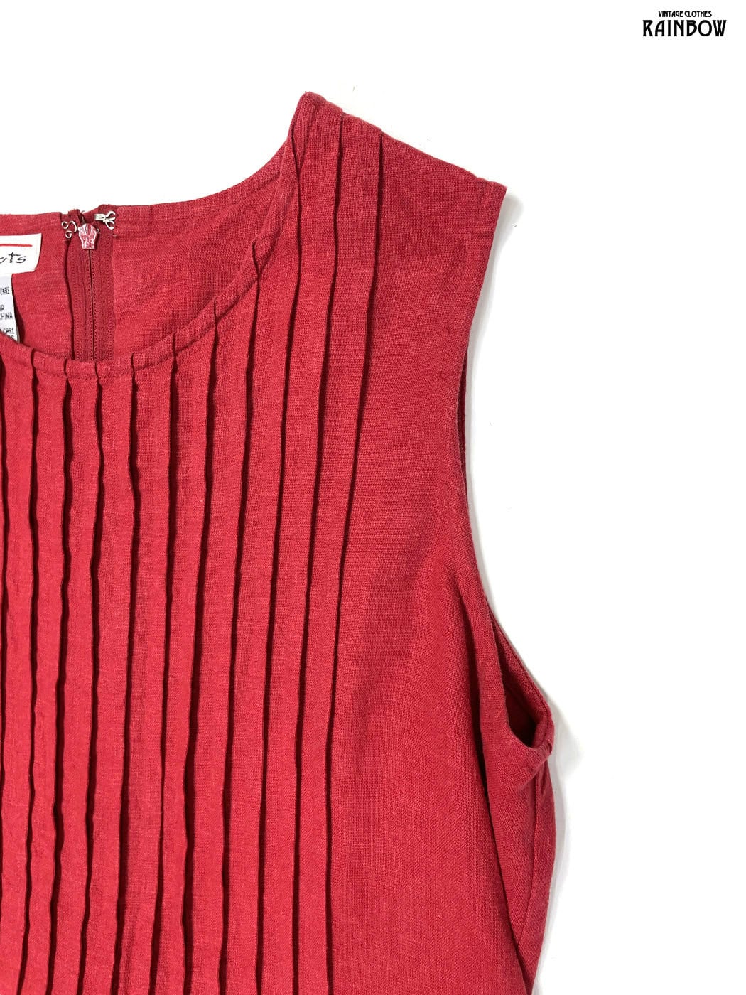 #ワンピース #ノースリーブ #ロング丈 #赤 #無地 #シンプル #リネン #ノースリーブ無地ワンピース