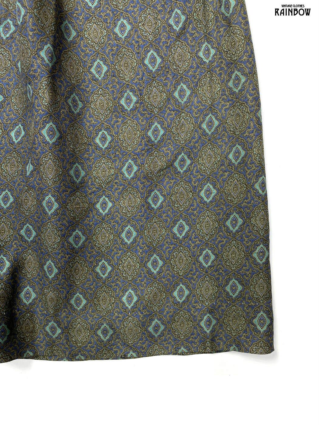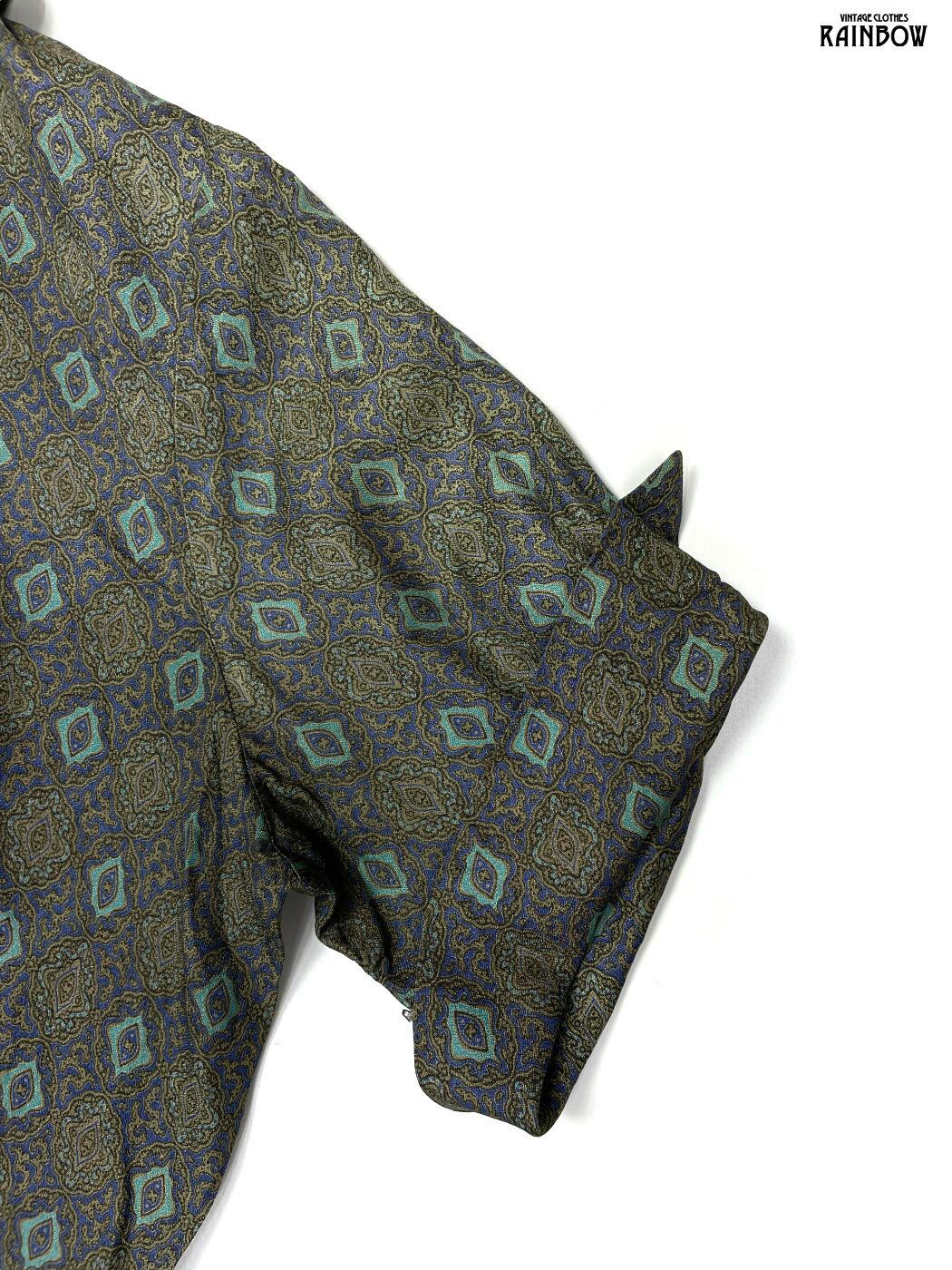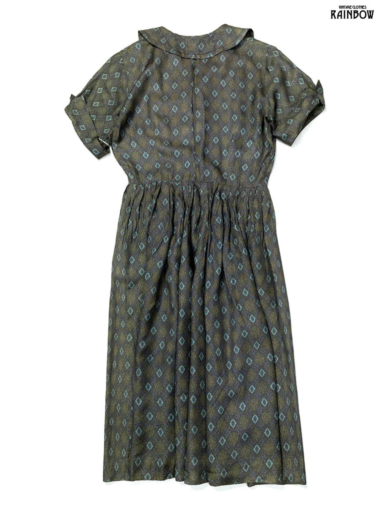 #ワンピース #ハーフスリーブ #ロング丈 #茶 #カーキ #総柄 #クラシック #半袖総柄ワンピース