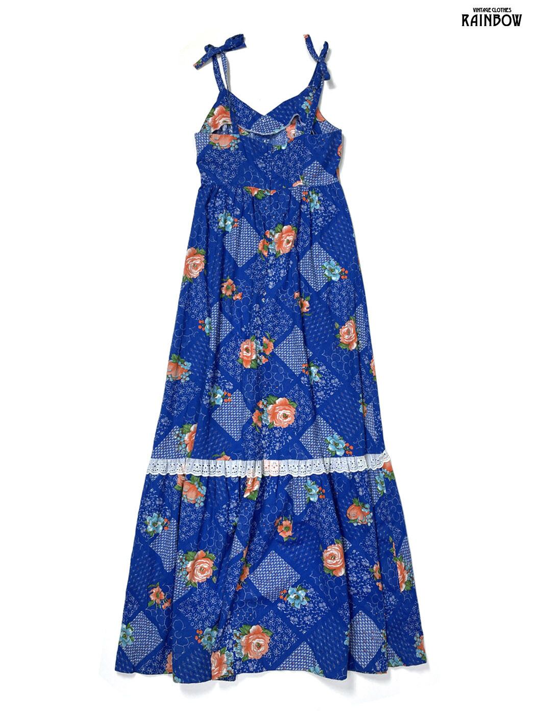 #ワンピース #キャミソール #ロング丈 #Aライン #青 #花柄 #レース #TALONジップ #クラシック #コットン #キャミソール花柄ワンピース