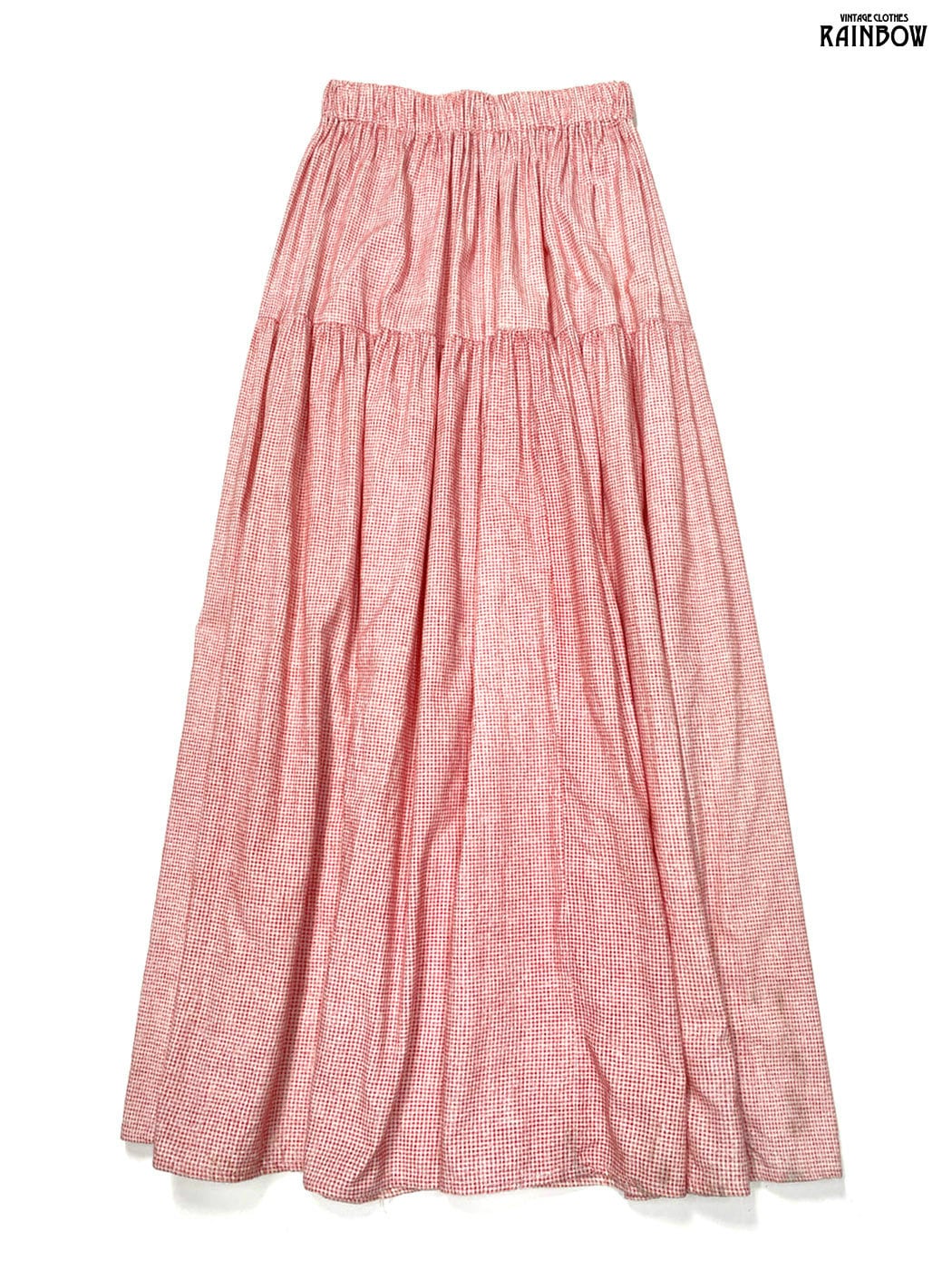 #スカート #ロング丈 #フレア #ゴムウエスト #赤 #チェック柄 #ギンガムチェック柄 #レース #コットン #柄ライトスカート