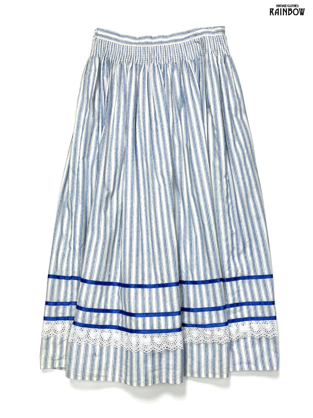 #スカート #ロング丈 #フレア #青 #水色 #ストライプ柄 #レース #コットン #柄ライトスカート