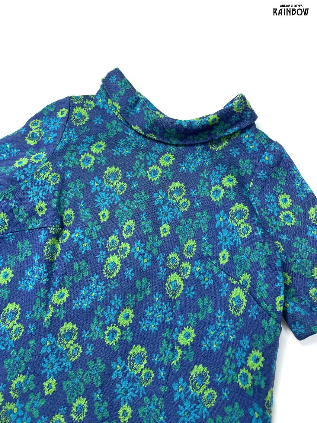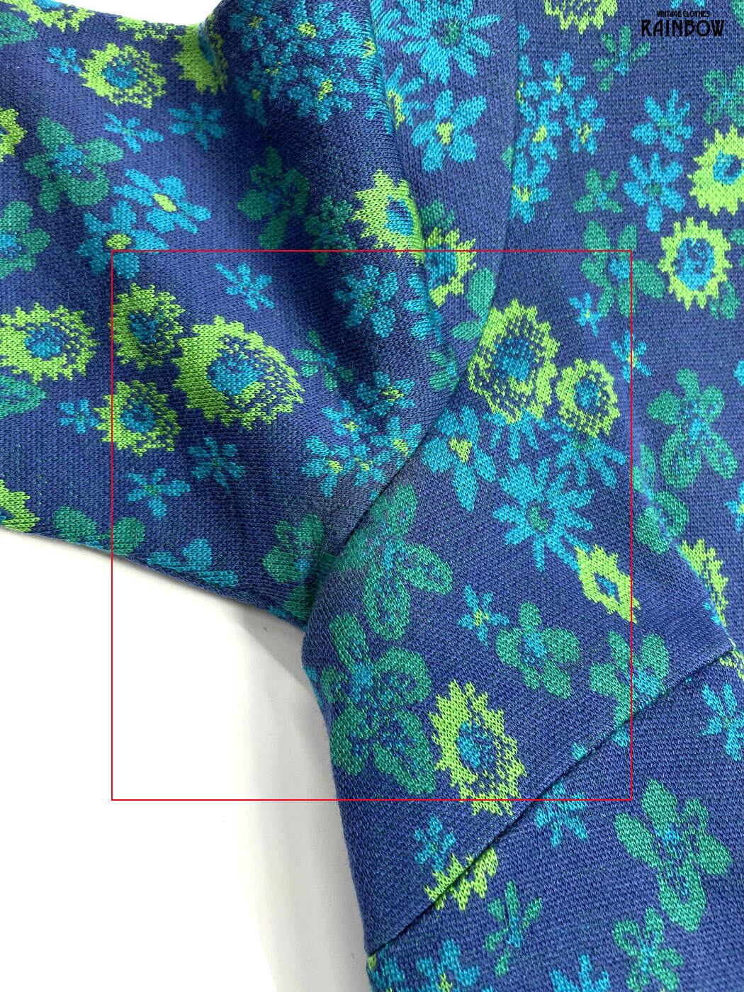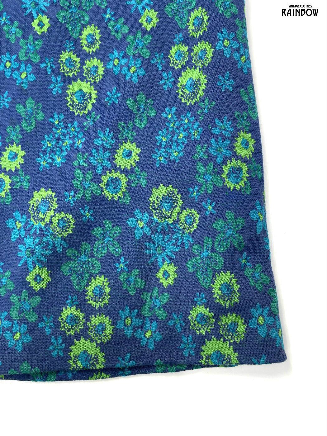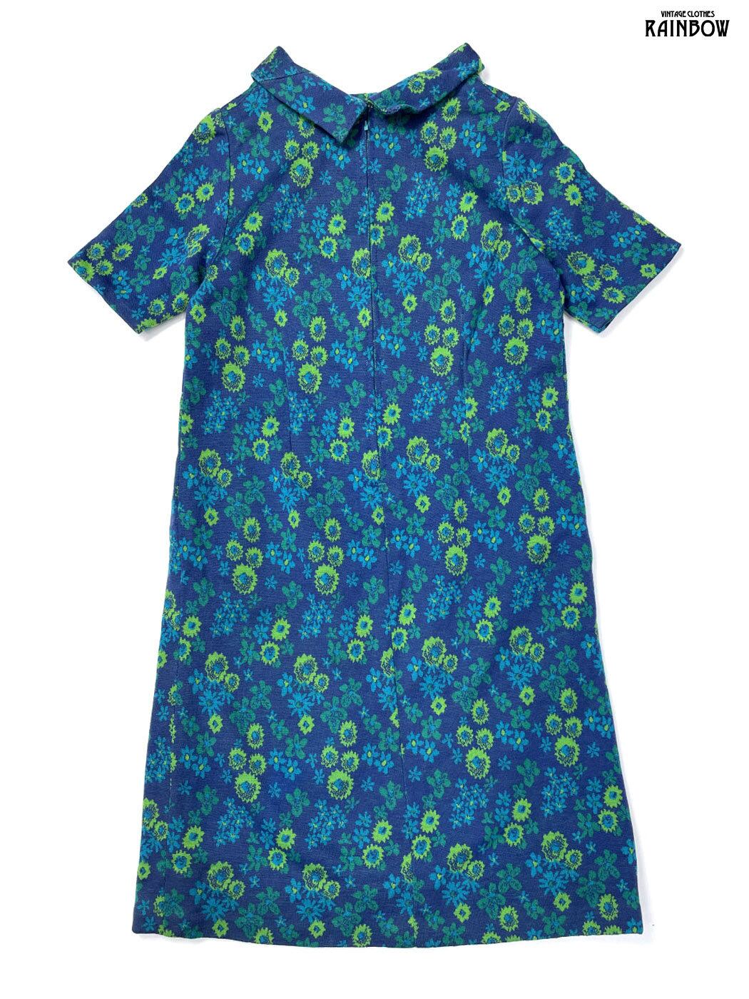 #ワンピース #ハーフスリーブ #膝丈 #青 #花柄 #クラシック #ニット地 #ニットワンピース