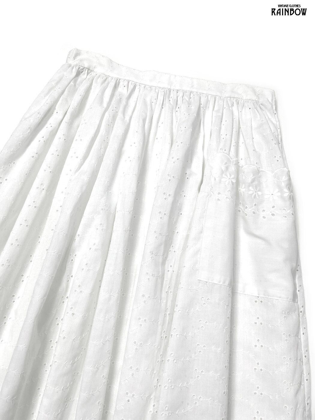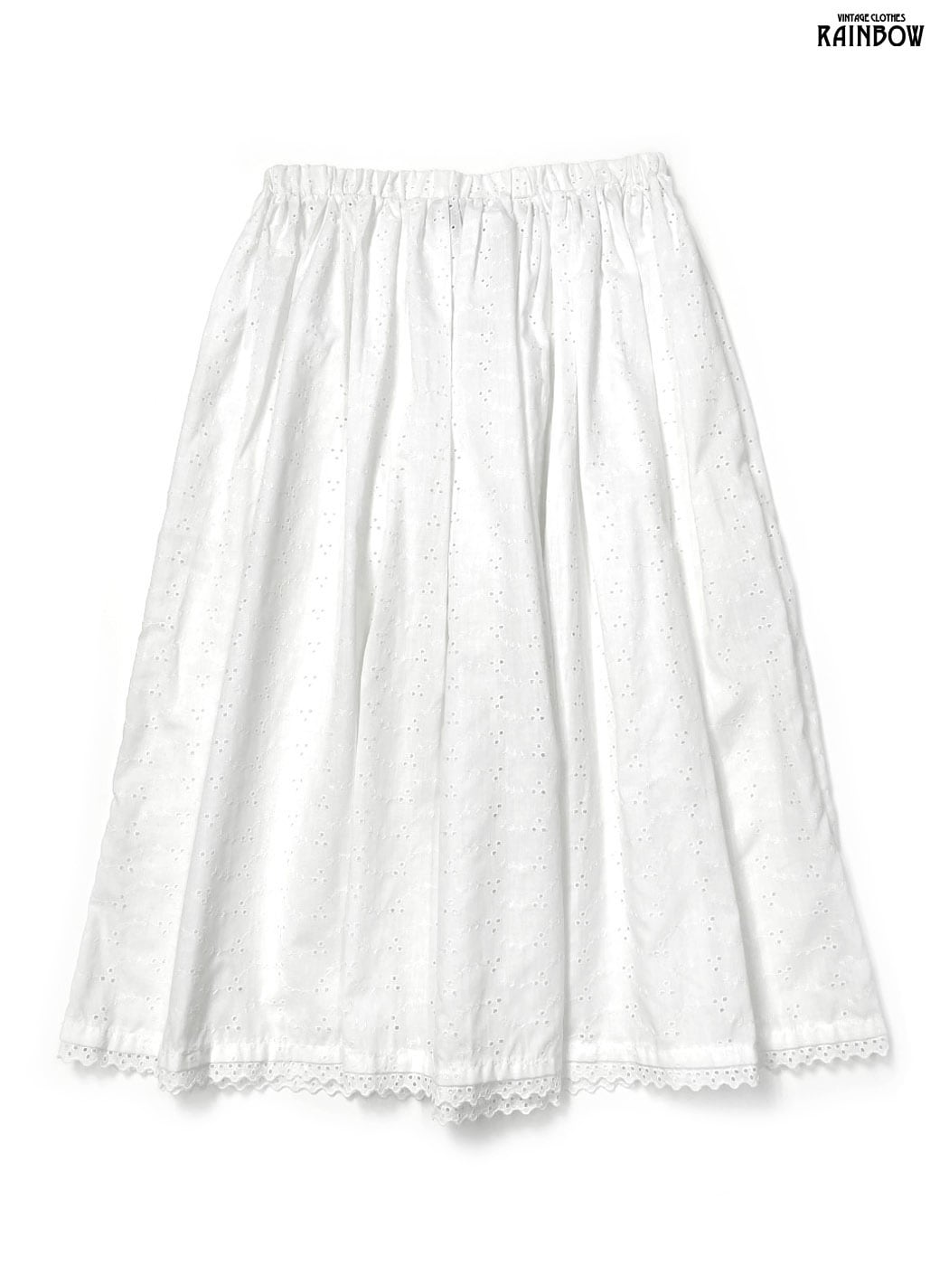 #スカート #膝丈 #ゴムウエスト #白 #無地 #アメリカ製 #総レース #総レーススカート