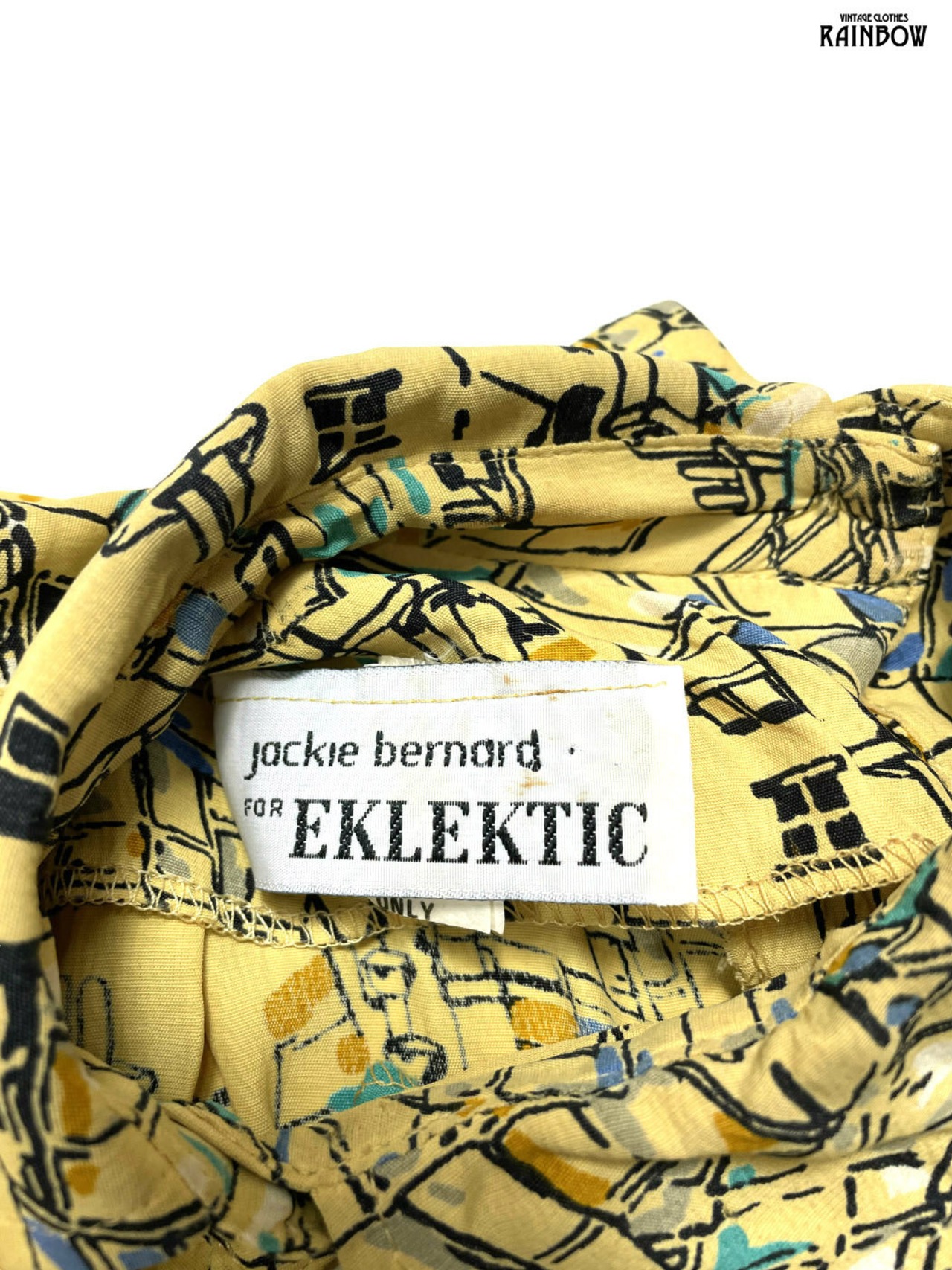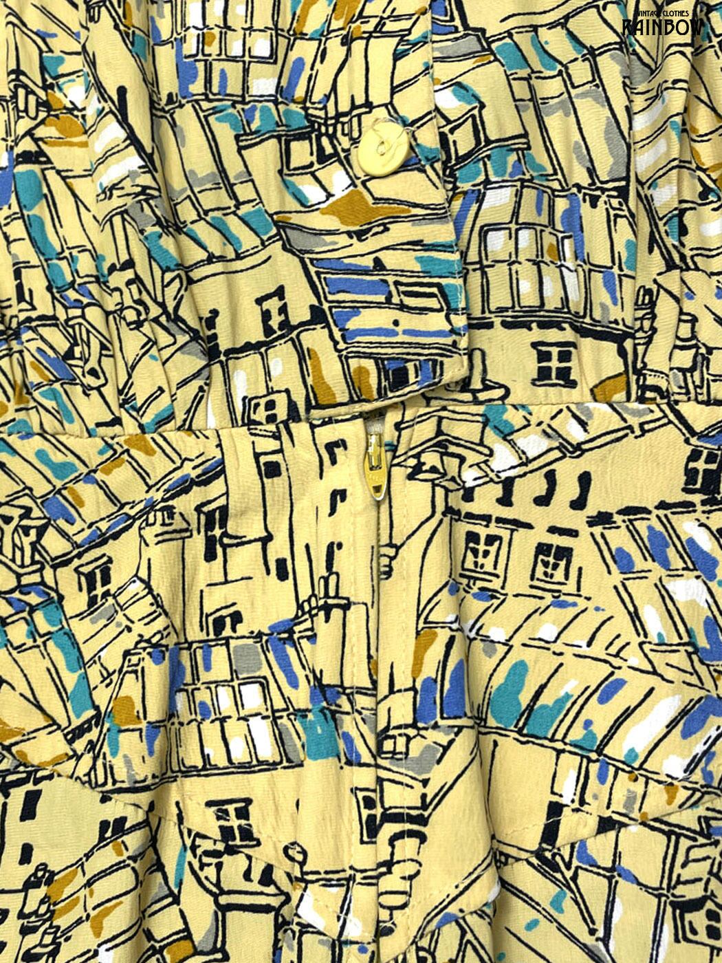#ワンピース #ハーフスリーブ #ロング丈 #ウエスト切り替え #黄 #総柄 #アメリカ製 #レーヨン #半袖総柄ワンピース #TALONジップ