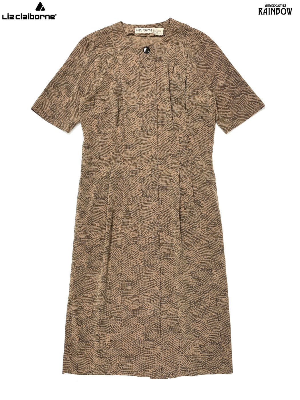 #ワンピース #ハーフスリーブ #ロング丈 #茶 #総柄 #前開き #クラシック #半袖総柄ワンピース